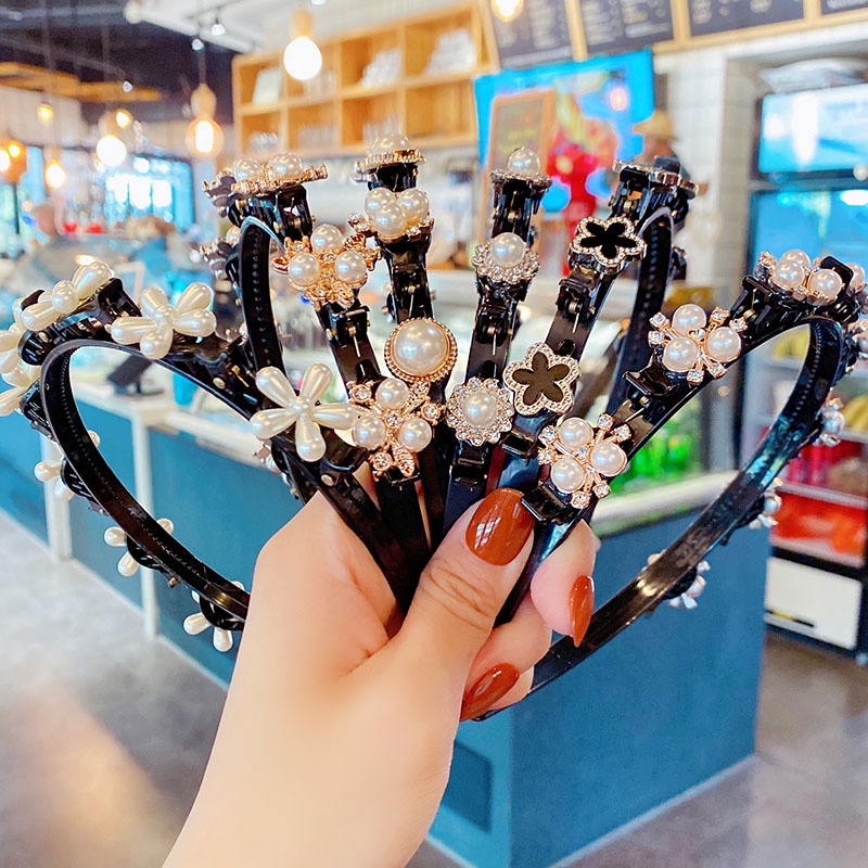ที่คาดผม ประดับไข่มุก พลอยเทียม ดอกไม้ ยืดหยุ่น กันลื่น เครื่องประดับ สําหรับผู้หญิง