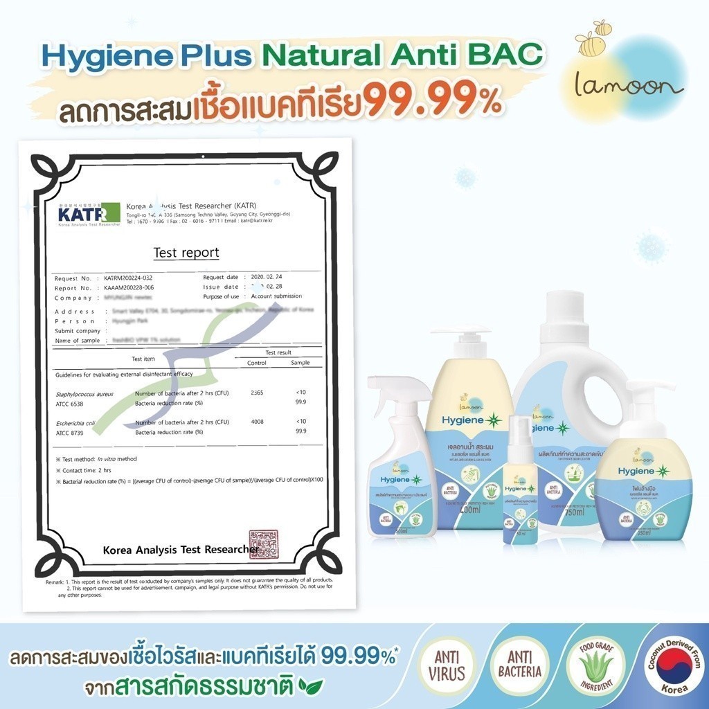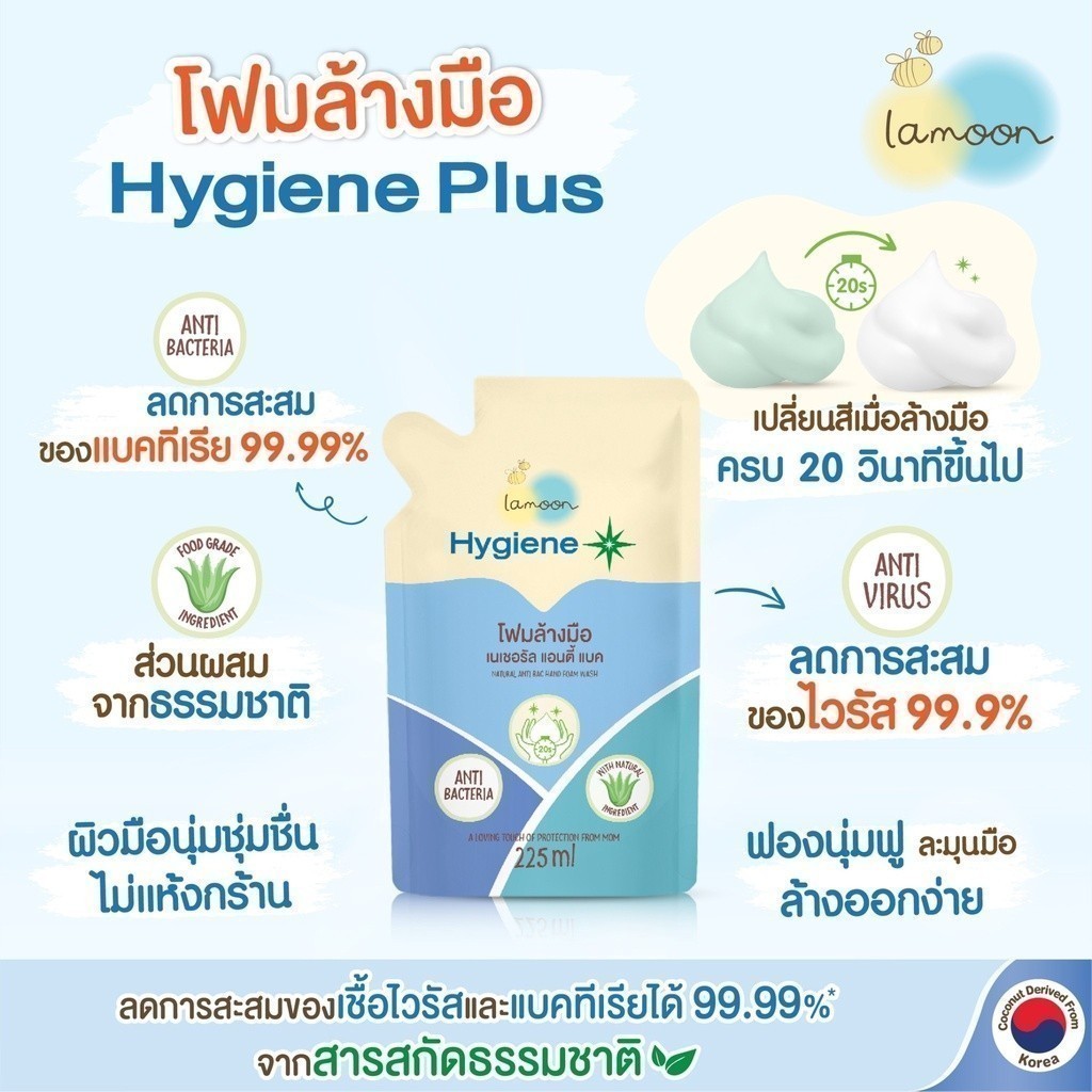 Lamoon ไฮจีนพลัส โฟมล้างมือป้องกันไวรัส สำหรับเด็ก ฆ่าเชื้อไวรัสและแบคทีเรียได้ในขวดเดียว ส่วนผสมธรรมชาติ100% Lamoon