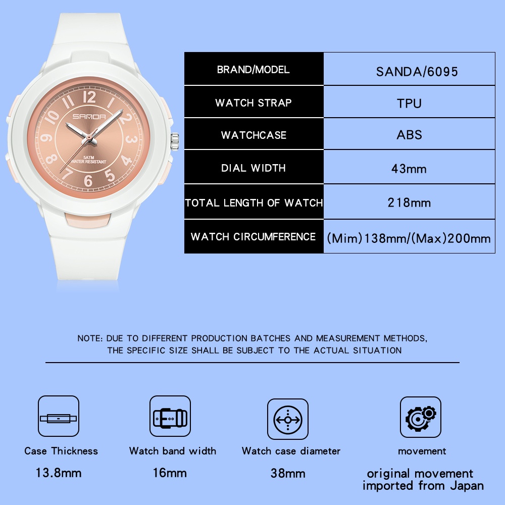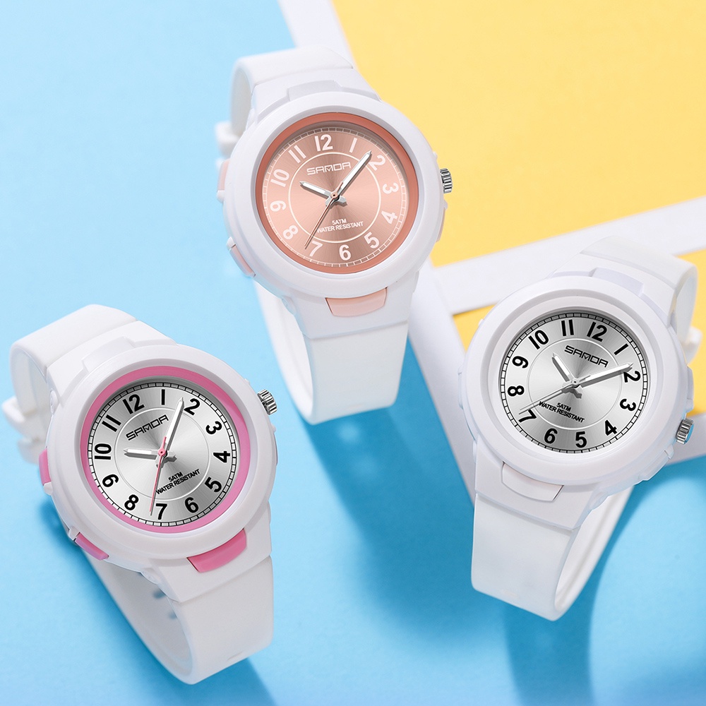 Sanda 2022 นาฬิกาข้อมือสปอร์ต กันน้ํา สีพื้น สําหรับเด็กผู้ชาย ผู้หญิง 6095-9