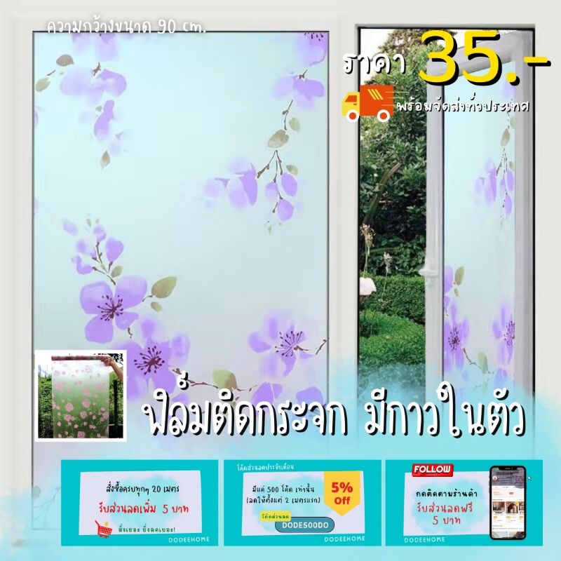 สติ๊กเกอร์ฝ้าติดกระจก สติกเกอร์ติดกระจก ฟิล์มติดกระจกบ้าน ฟิล์มฝ้า ความกว้าง 90 ซม. ตัดความยาวรวม