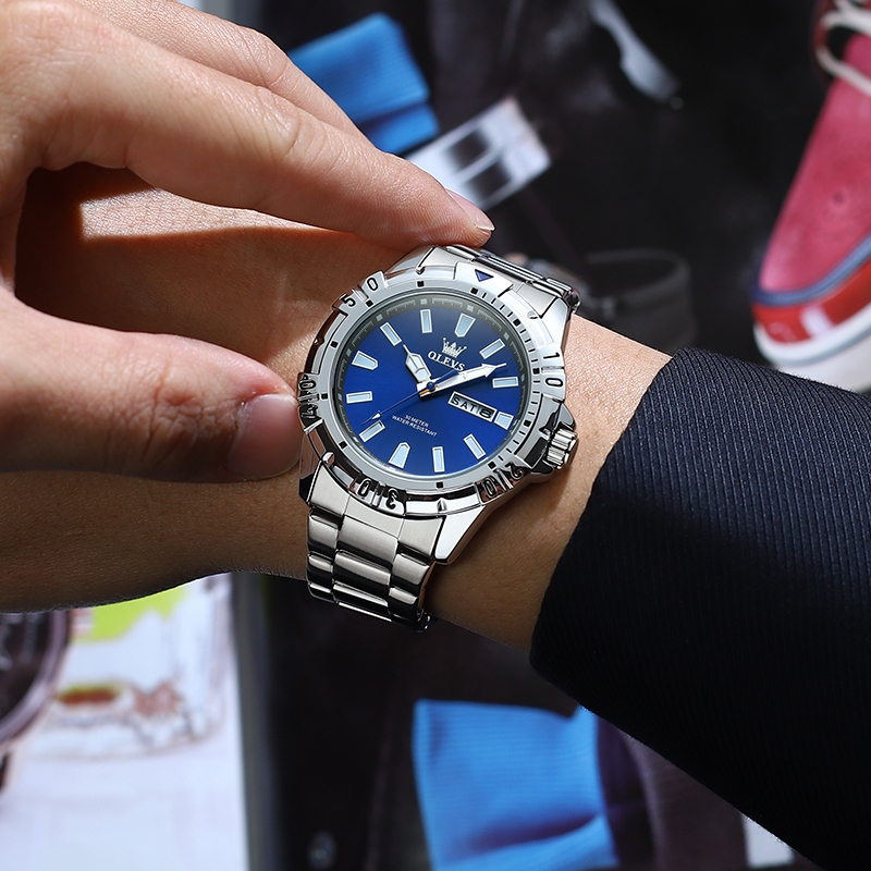 OLEVSสปอตสินค้า นาฬิกาผู้ชาย กันน้ำ ธุรกิจ กีฬา พร้อมกล่อง ดูเวลา ดูวันที่ สายสเตนเลส รับประกัน 3 ปี 5560