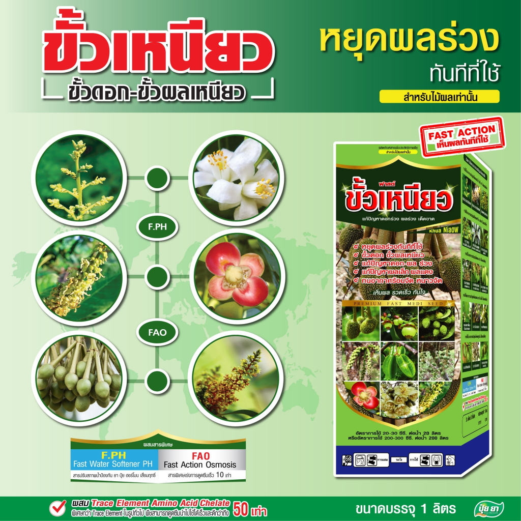 ขั้วเหนียว หยุดผลร่วง หยุดดอกร่วง สูตรคีเลต อะมิโนพืช ซึมไว พืชใช้ได้ทันที ปุ๋ยยา หลายขนาด