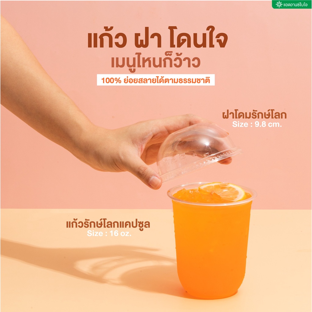 AdvanceBIO : ฝาโดม PET ย่อยสลาย ขนาด 16,22 ออน บรรจุ 50 ชิ้น/แพ็ค รุ่น 5027