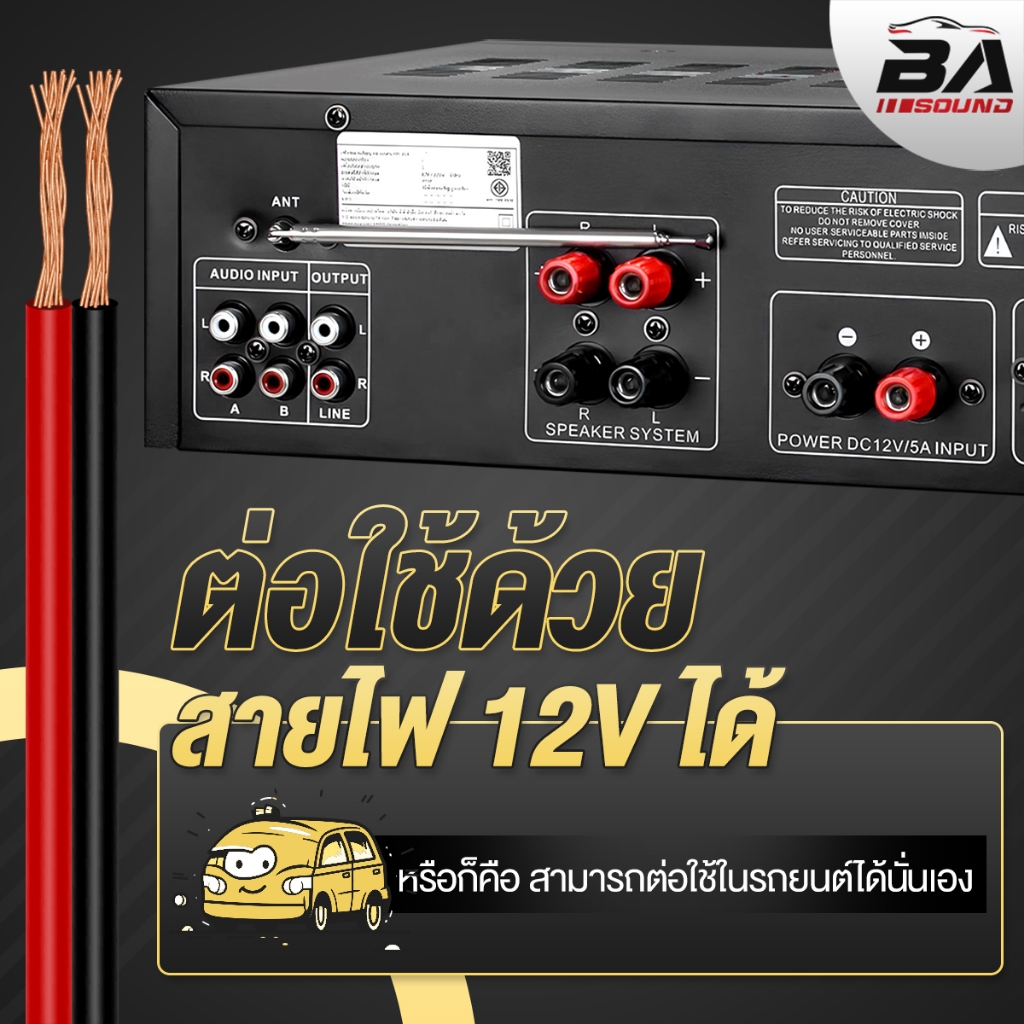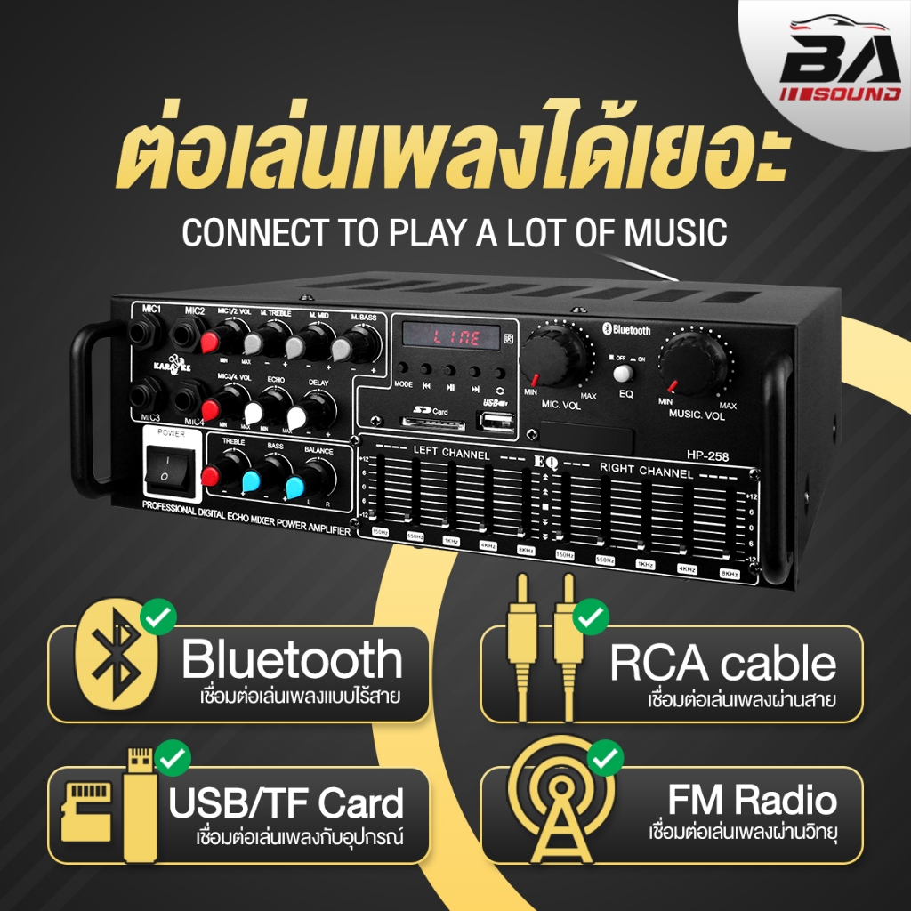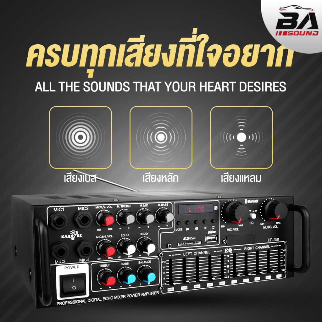BA SOUND เพาเวอร์แอมป์ 1600วัตต์ บลูทูธในตัว HP-258 ใช้ลำโพง 15นิ้วได้ เครื่องขยายเสียง แอมป์ขยายเสียง แอมป์รถยนต์
