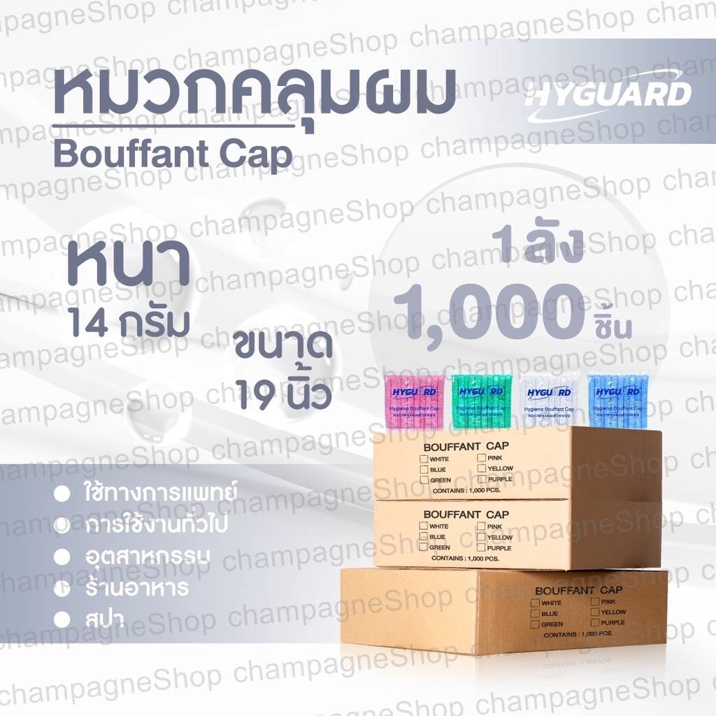 หมวกคลุมผม หมวกคลุมผมอนามัย เกรดใช้งานทางการแพทย์และทั่วไป Bouffant Cap ยกลัง1,000ชิ้น แบรนด์Hyguard