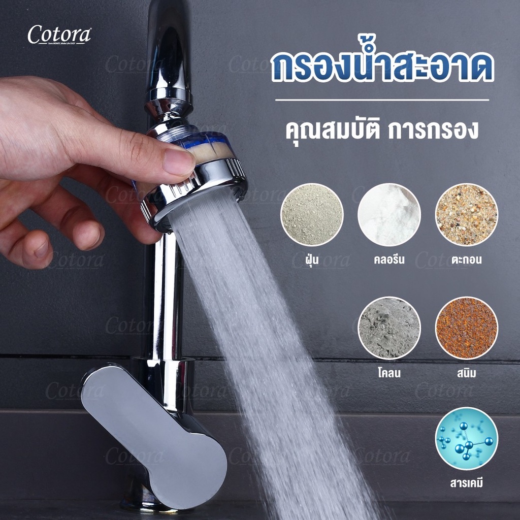 !! พร้อมส่งหัวต่อก๊อกน้ำ !! Cotora ก๊อกกรองน้ำ หัวกรองน้ำ เพิ่มแรงดัน กรองละเอียด 5ไมครอน ก๊อกต่อหมุนได้ 360 องศา
