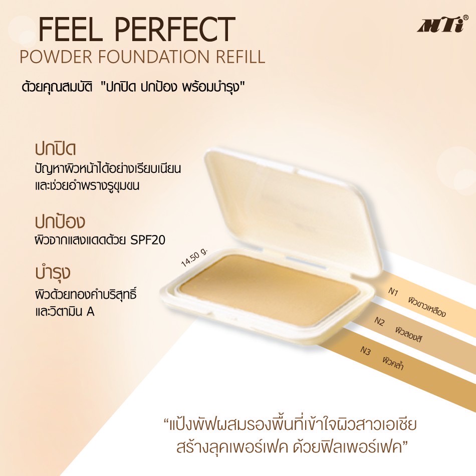 MTI Feel Perfect Compact Powder Foundation With Sunscreen Refill รีฟิล แป้ง รองพื้น ผสมทองคำ แป้งทอง เอ็มทีไอ RR MALL