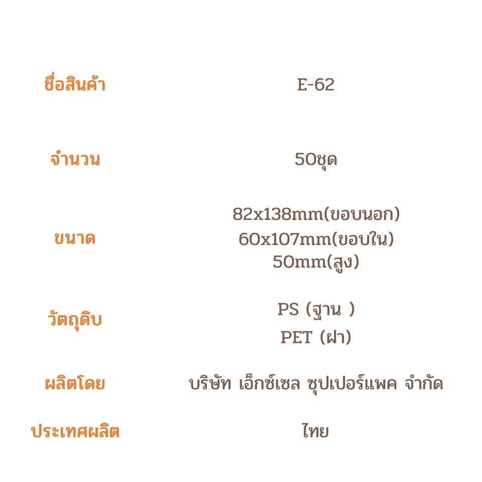 E62 กล่องฐานน้ำตาล + ฝาPET กล่องเบเกอรี่ E-62 50ชุด Brown Base Bakery Box 50pcs