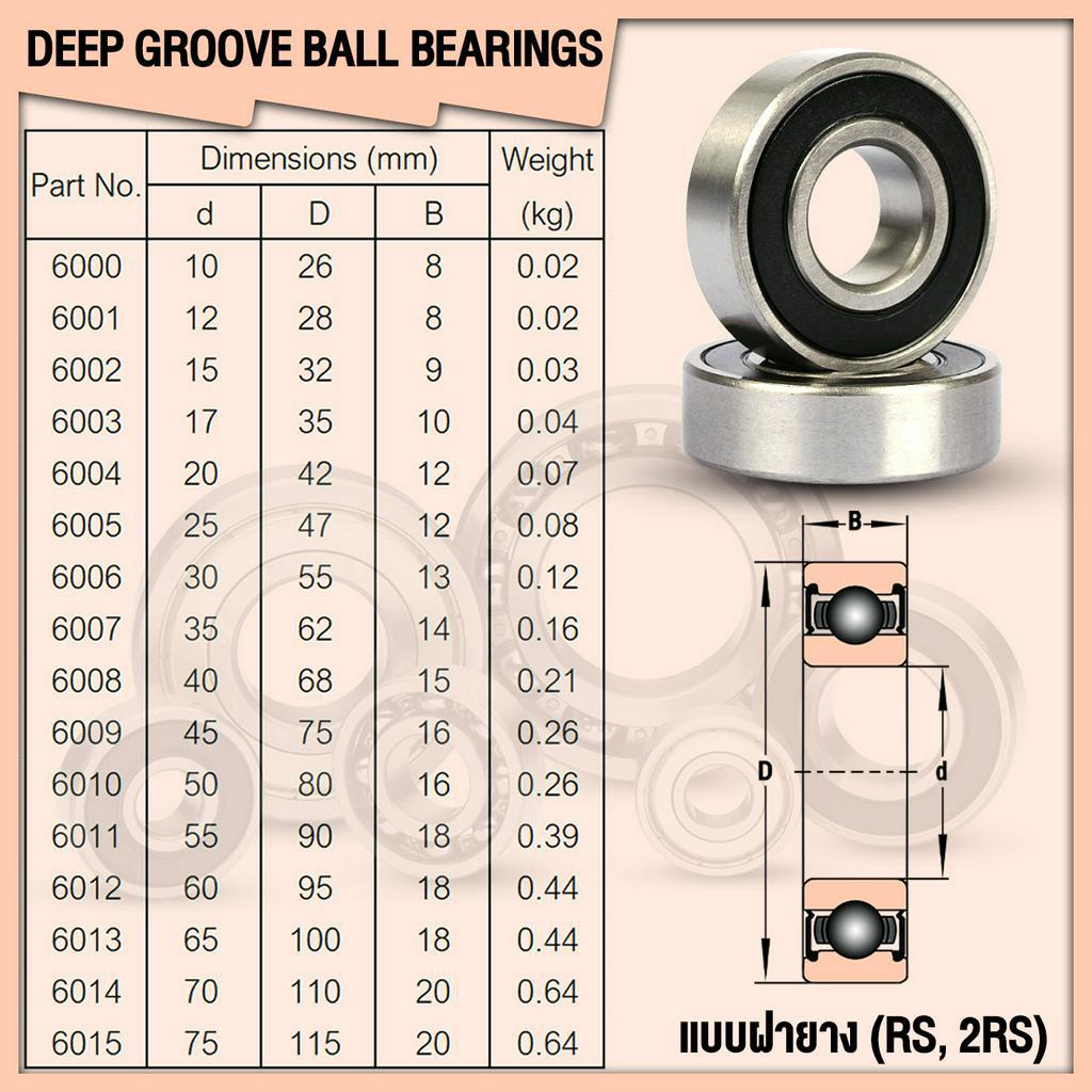 6000-2RS 6001-2RS 6002-2RS 6003-2RS 6004-2RS 6005-2RS KMB ตลับลูกปืนเม็ดกลม ฝายาง 2 ข้าง 2RS, RS (BALL BEARINGS) โดย TSS