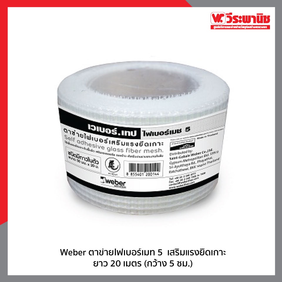 Weber ตาข่ายไฟเบอร์เมท 5 เสริมแรงยึดเกาะ ชนิดมีกาวในตัว ยาว 20 เมตร (กว้าง 5 ซม.)