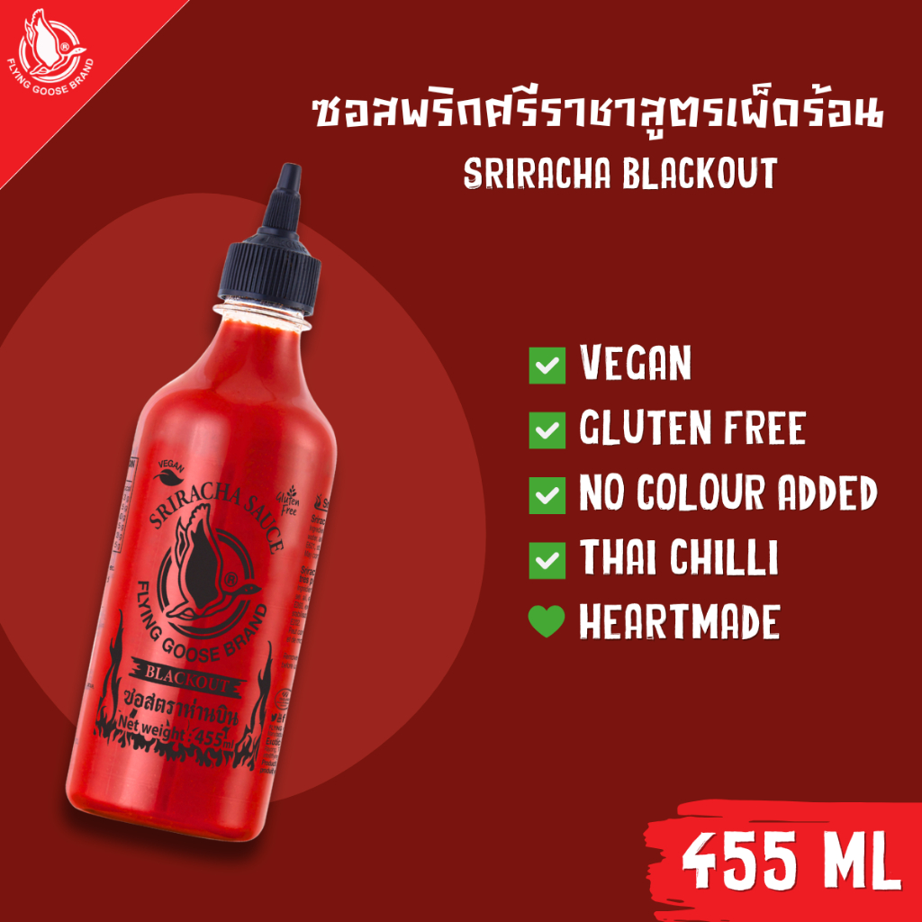 ซอสพริกศรีราชา สูตรเผ็ดร้อน ตราห่านบิน 455มล. Flying Goose Sriracha Blackout 455 ml.