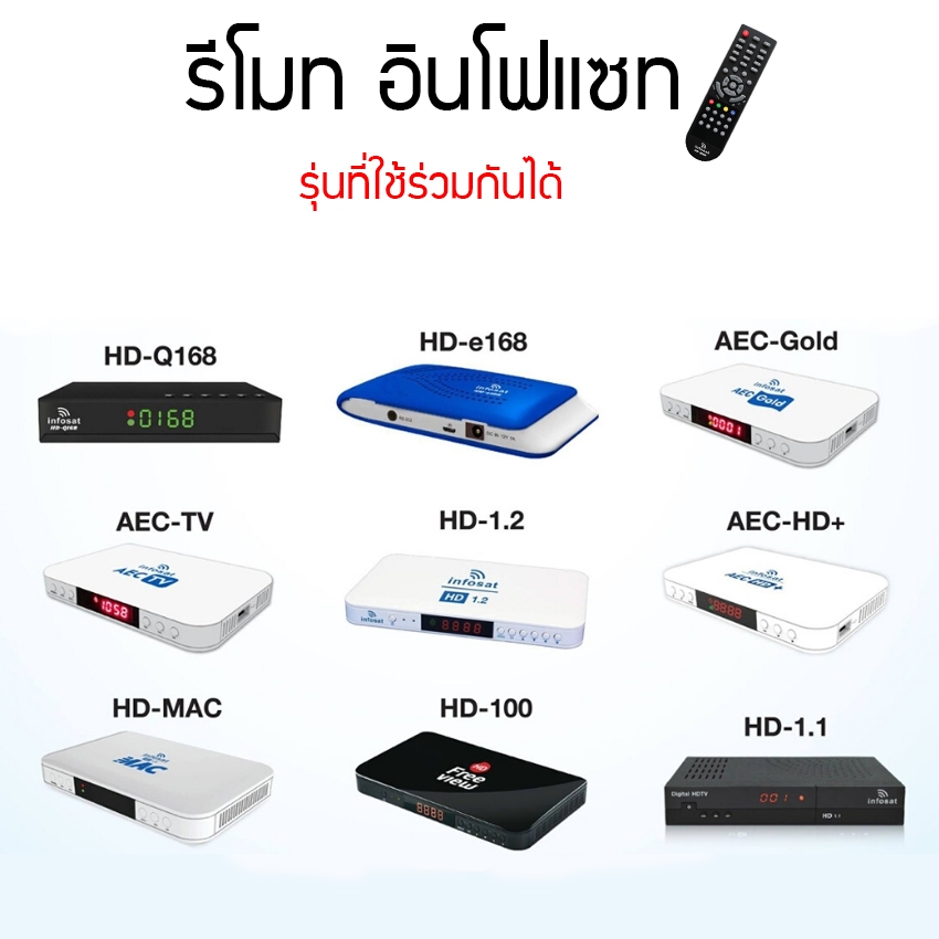 Remote รุ่น Q168,X168,E168 ใช้งานกับกล่อง infosat HD ได้ทุกรุ่น