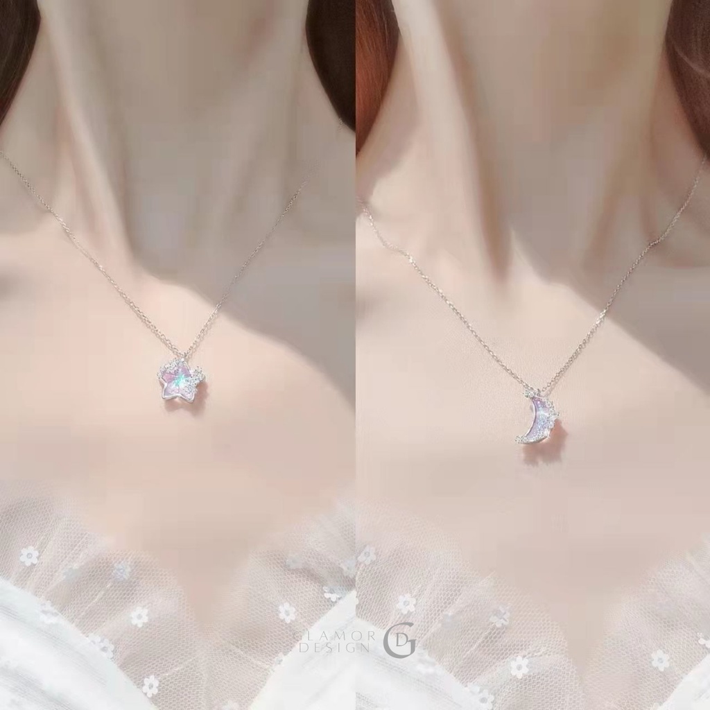 GLAMOR✨สร้อยคอเงินแท้ สร้อยคอสวยๆ ดีไซน์สุดเก๋ สร้อยสไตล์เกาหลี จี้ดาว จี้พระจันทร์ สร้อยเงินแท้