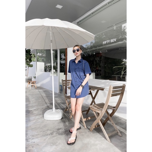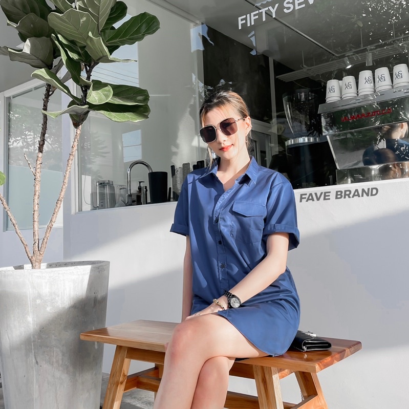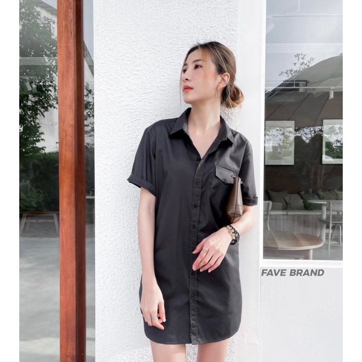 FAVE BRAND เดรสแขนสั้นโทน Midnight ผ้าคอตตอน ฟรีไซส์