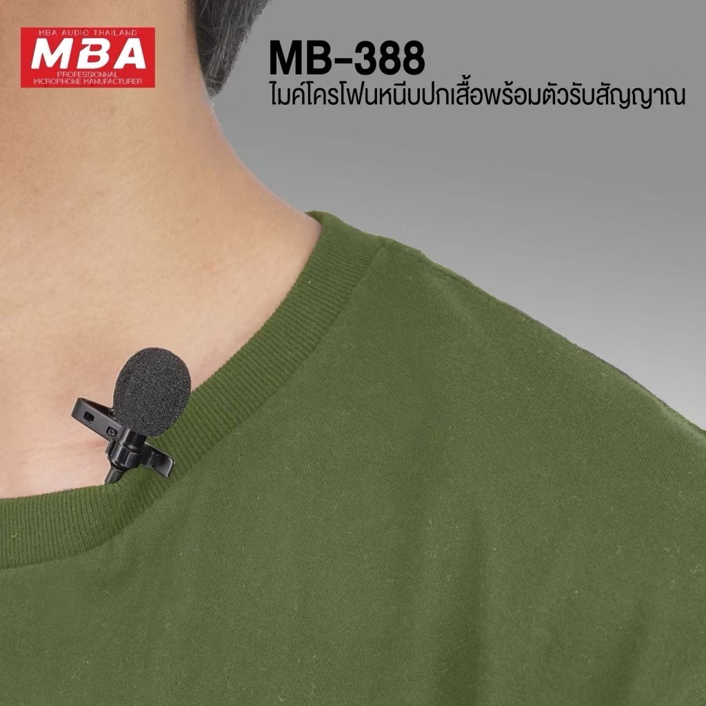 ไมค์wireless MBA รุ่น MB-388 ไมค์ลอยหนีบปกเสื้อ ชุดรับ-ส่งไมโครโฟนไร้สายแบบพกพา WIRELESS MICROPHONE UHF