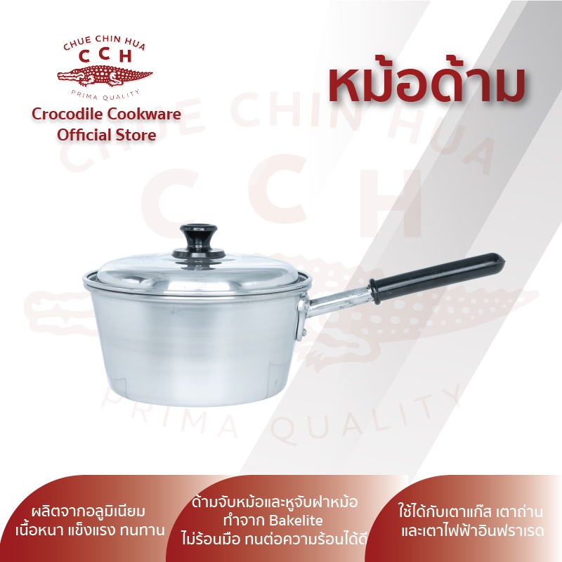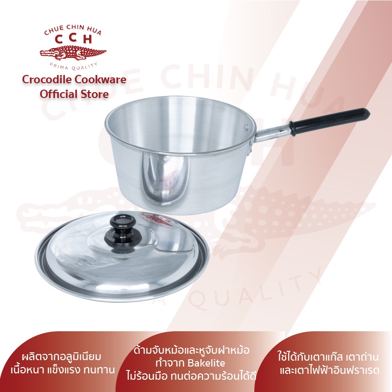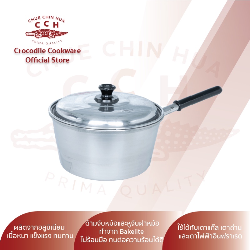 Crocodile Cookware หม้อด้าม หม้อโจ๊ก หม้อด้ามอลูมิเนียม มีขนาด 18/20 ซม.