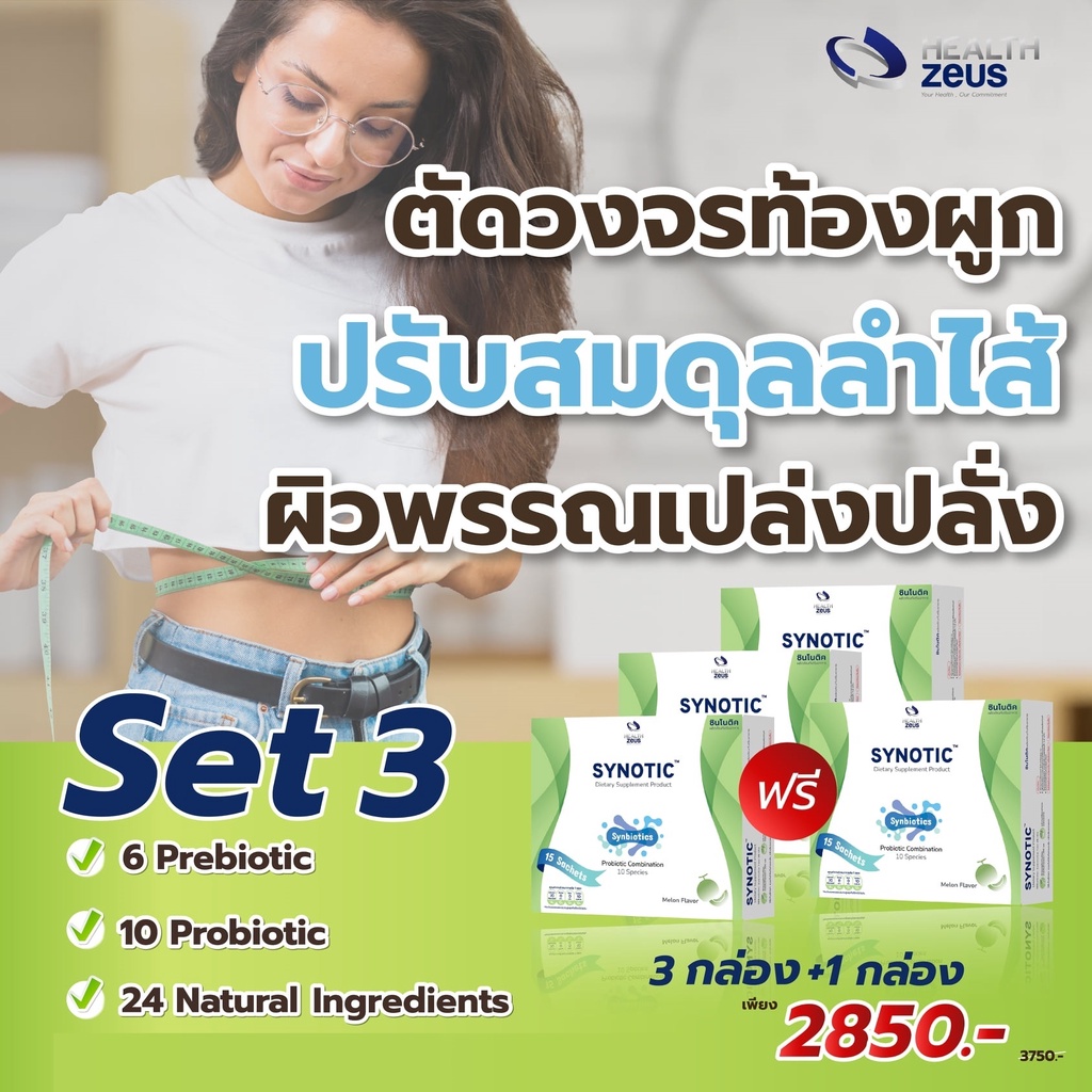ผลิตภัณฑ์เสริมอาหาร (18กรัม*15ซอง) แพ็ค 3 กล่อง แถม 1 กล่อง ซินโนติก ราคาสุดพิเศษ