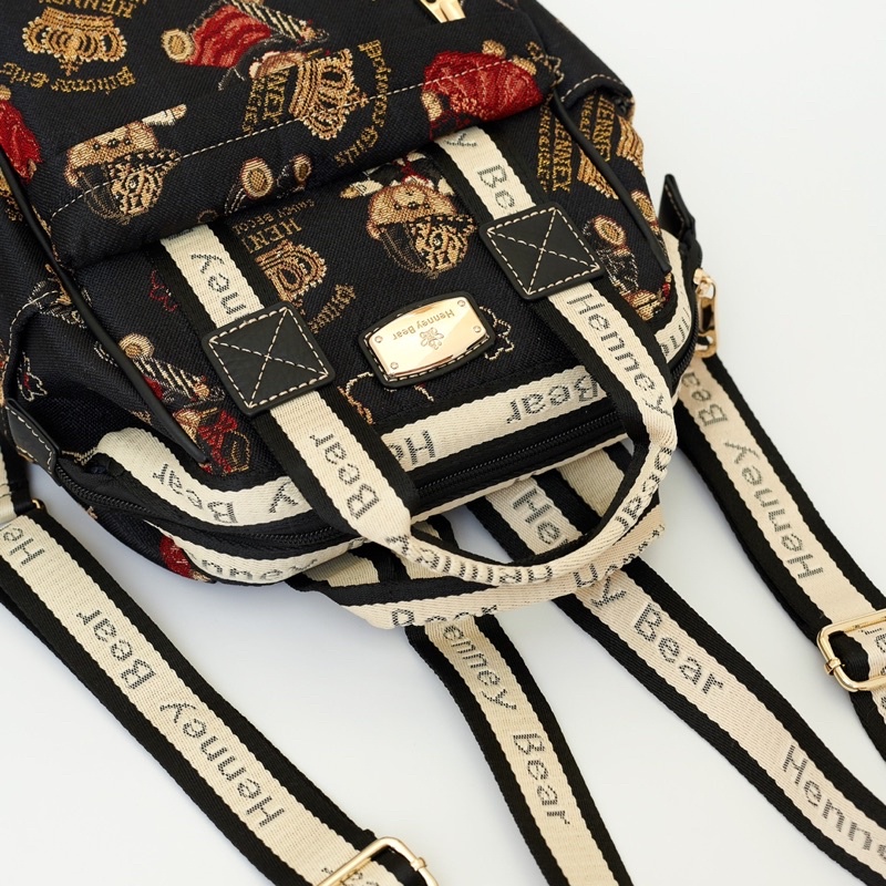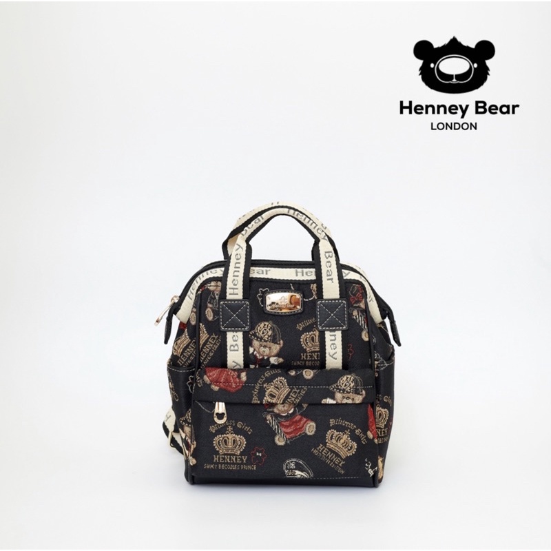 Henneybear H375 - Crownbear กระเป๋าเป้ไซส์เล็กสีดำ ลายคราวน์แบร์