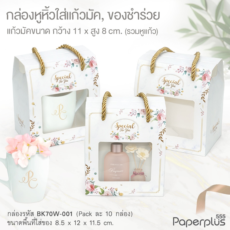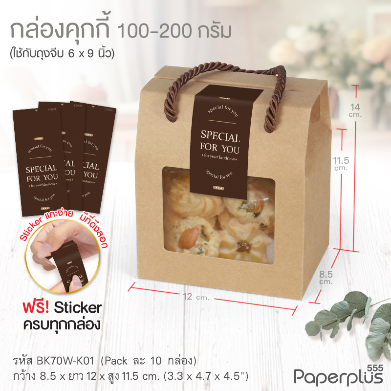555paperplus กล่องหูหิ้ว 8.5x12x14 ซม.(10 ใบ) BK70W กล่องคุกกี้ Gift set ปีใหม่