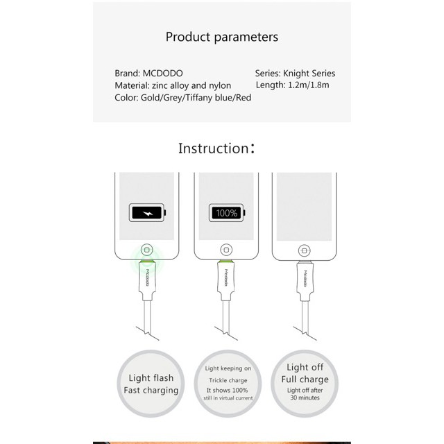 Mcdodo สายชาร์จอัจฉริยะ สำหรับ (iP,MicroUSB,Type C) ใยไนล่อนแข็งแรงทนทานความยาว 1/1.8 เมตร ของแท้100% KNIGHT SERIES