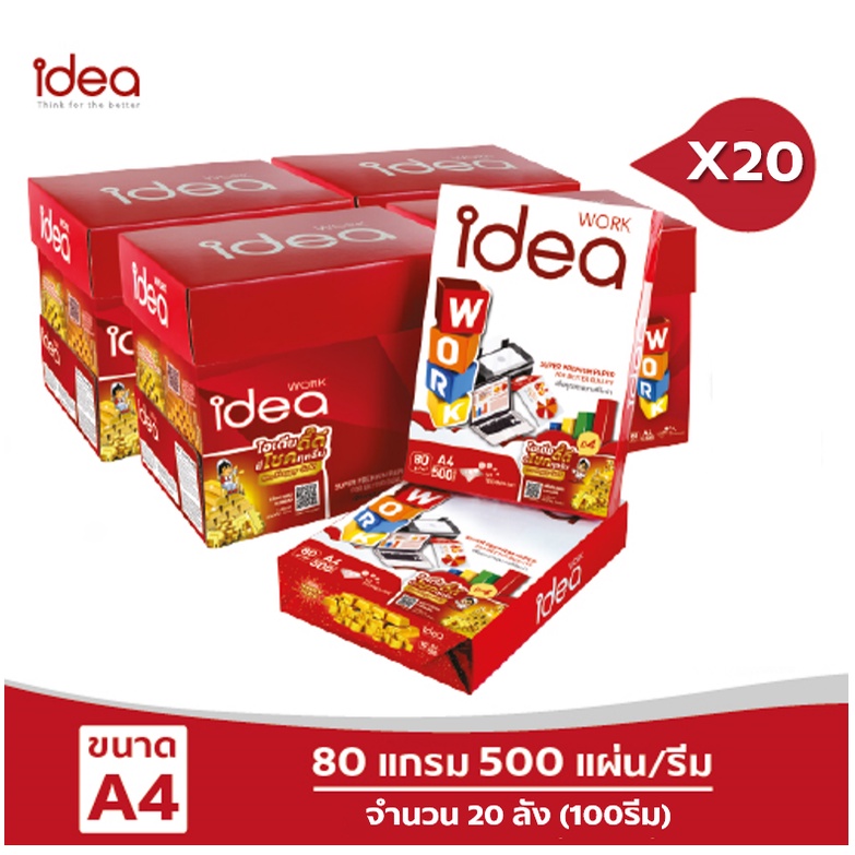 [ส่งฟรี!] Idea Work กระดาษถ่ายเอกสาร 80 แกรม A4 จำนวน 20 ลัง