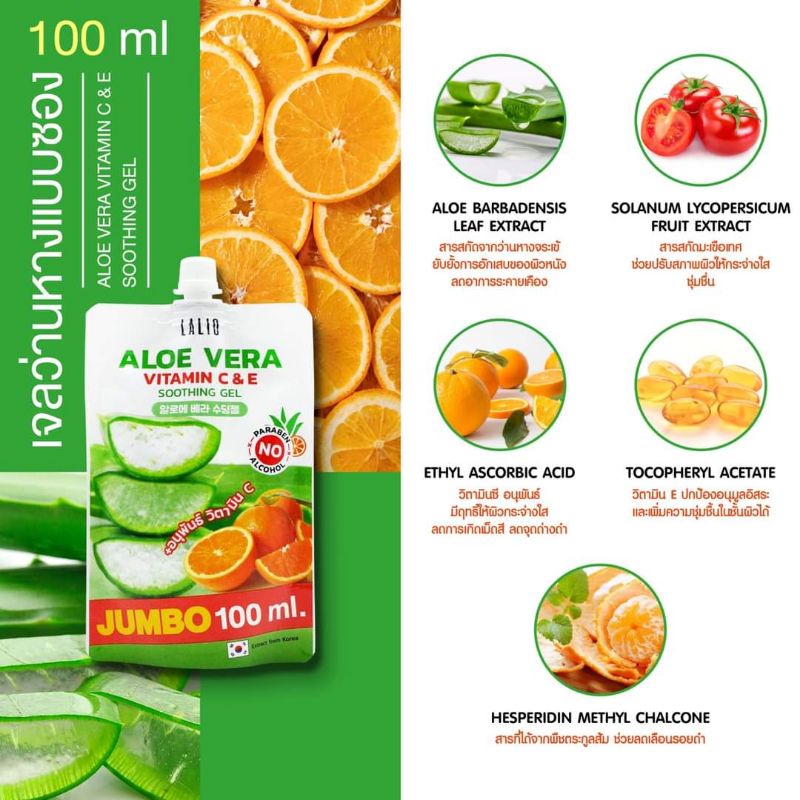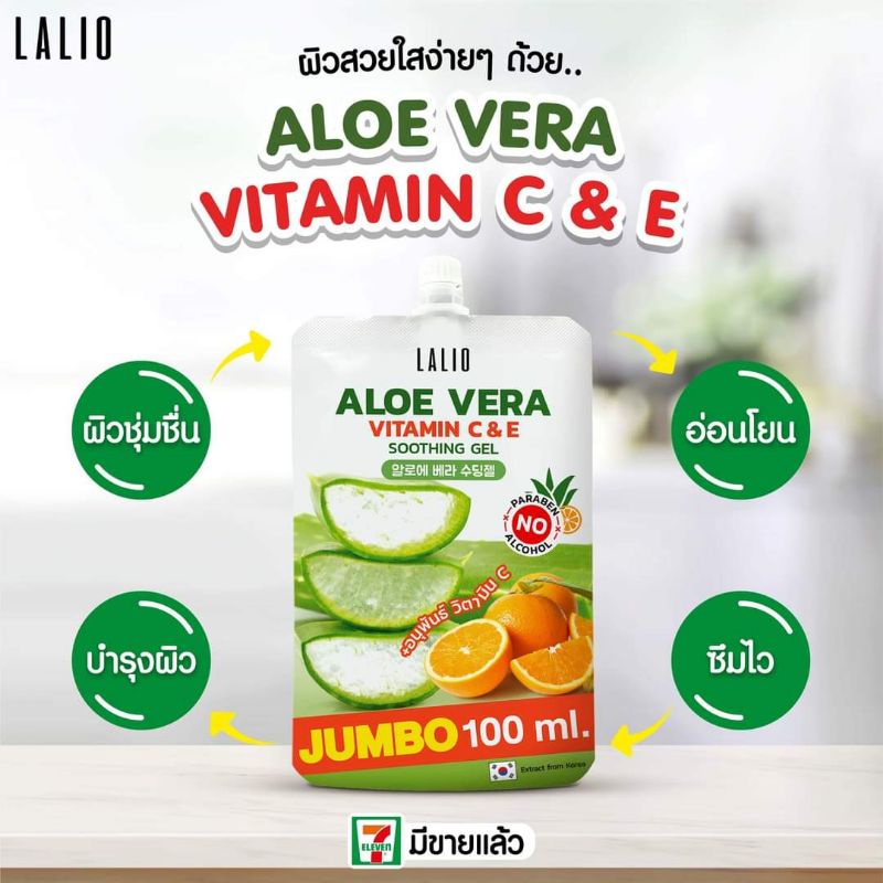 Lalio AloeVera Vitamin C & E Soothing Gel 100ml เจลว่านหางจระเข้ วิตามินซี วิตามินอี เพิ่มความชุ่มชื้น ขาวใส