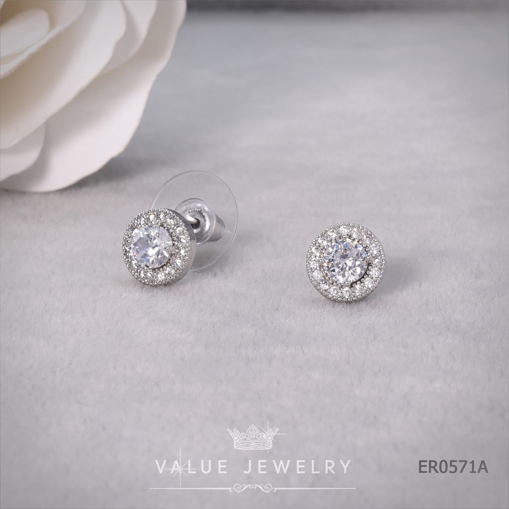 Value Jewelry ER0571 กว้าง0.9cmยาว0.9cm ต่างหู ตุ้มหู แฟชั่น ขายดี ราคาส่ง เพชร CZ คริสตัล ไม่ลอก ไม่ดำ ไม่แพ้ ไม่คัน