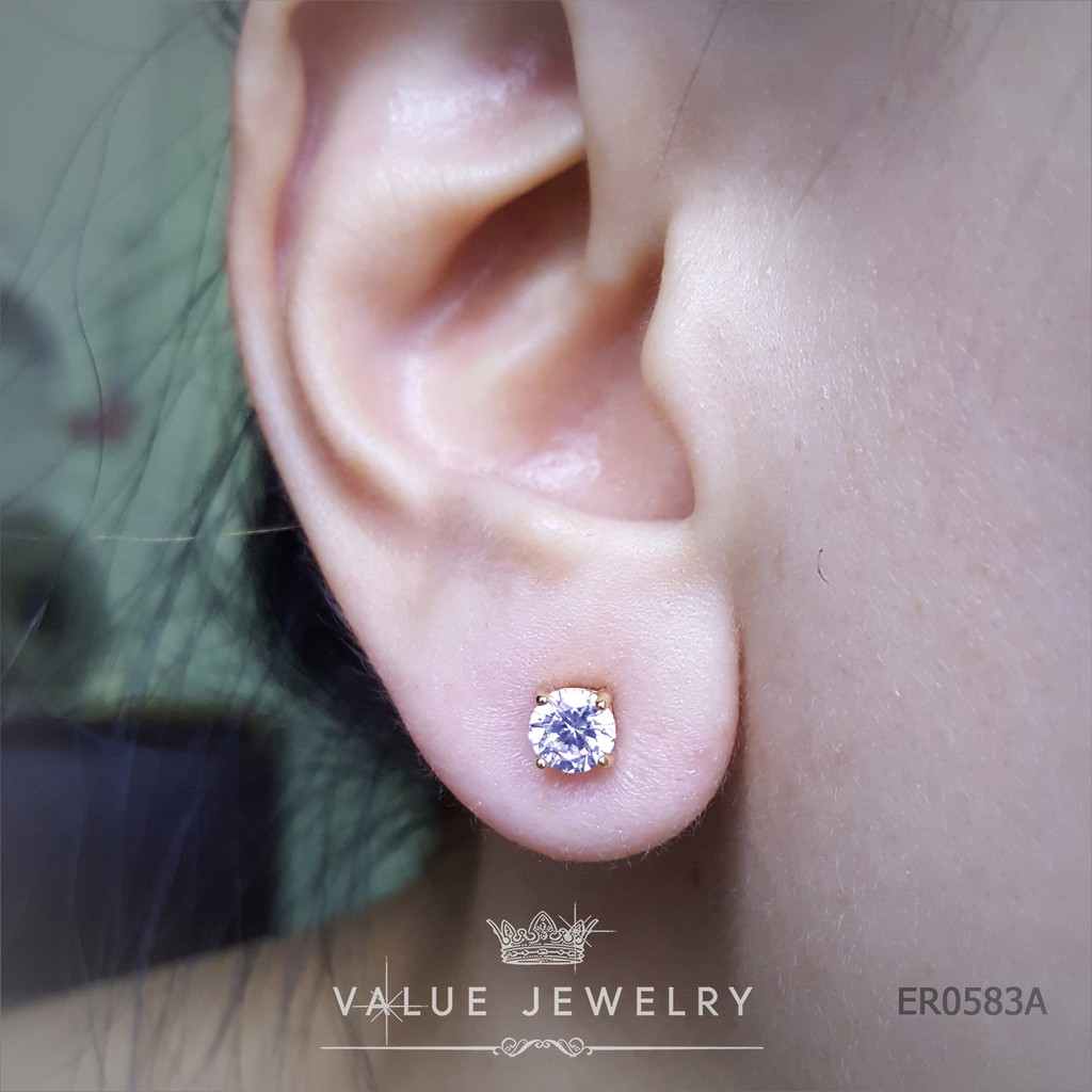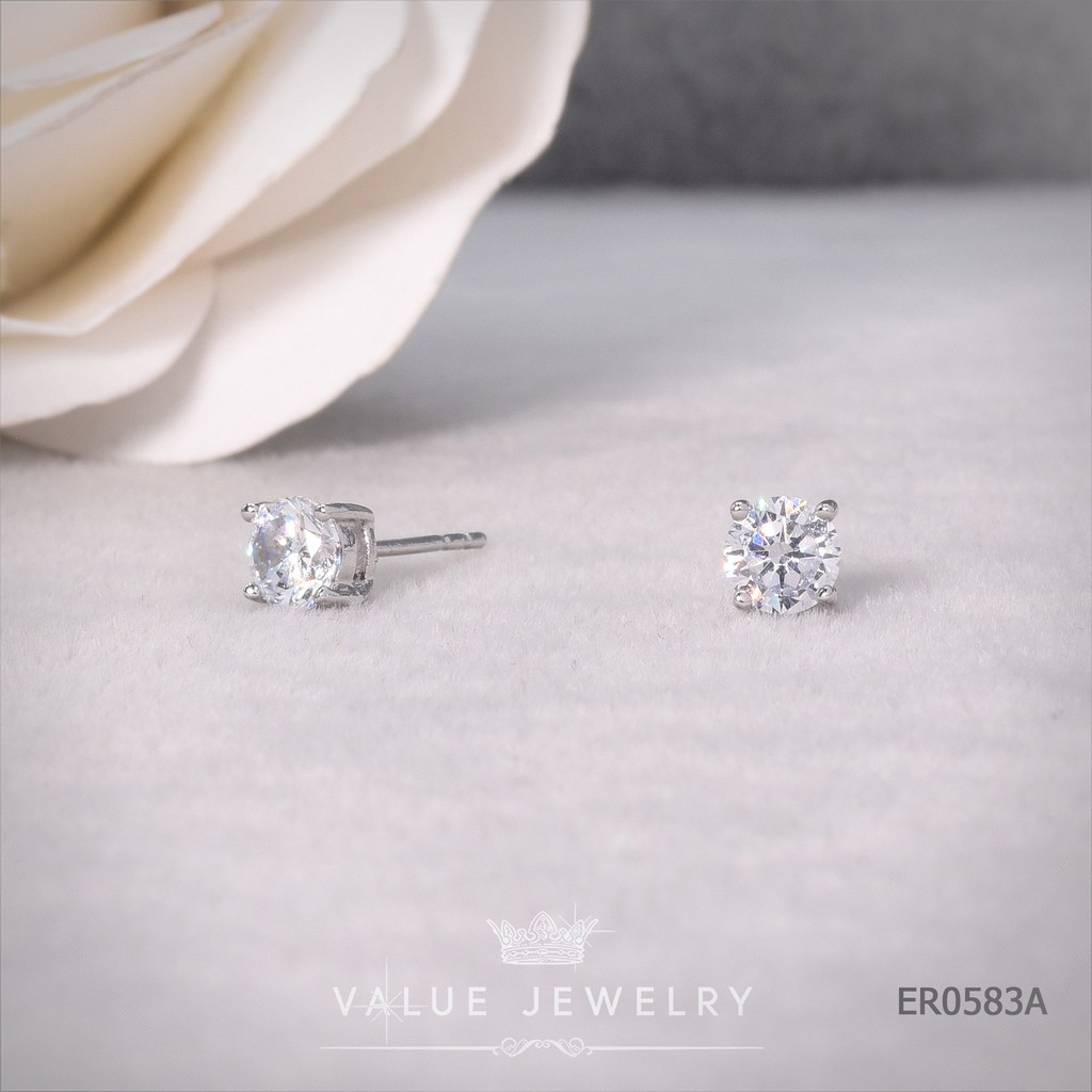 ต่างหูแป้น คริสตัลกลม ขนาด 5 มิล สีเงิน ตุ้มหู เครื่องประดับ ER0583 ValueJewelry