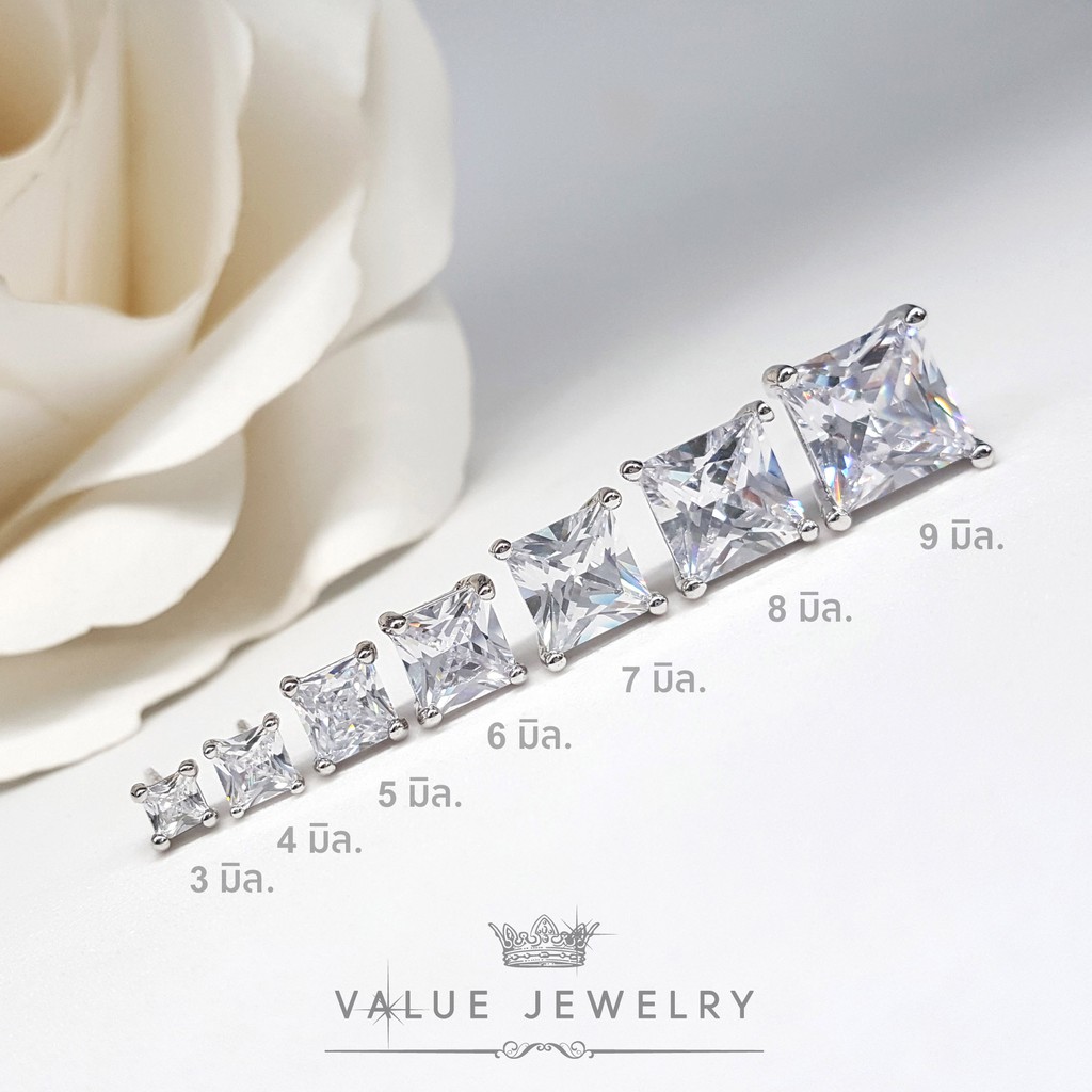 ต่างหูแป้น คริสตัลแท้ มี2สี 9ขนาด ทรงกลม ทรงเหลี่ยม ต่างหู ตุ้มหู แฟชั่น ขายดี เพชร CZ เครื่องประดับ ValueJewelry ER0581