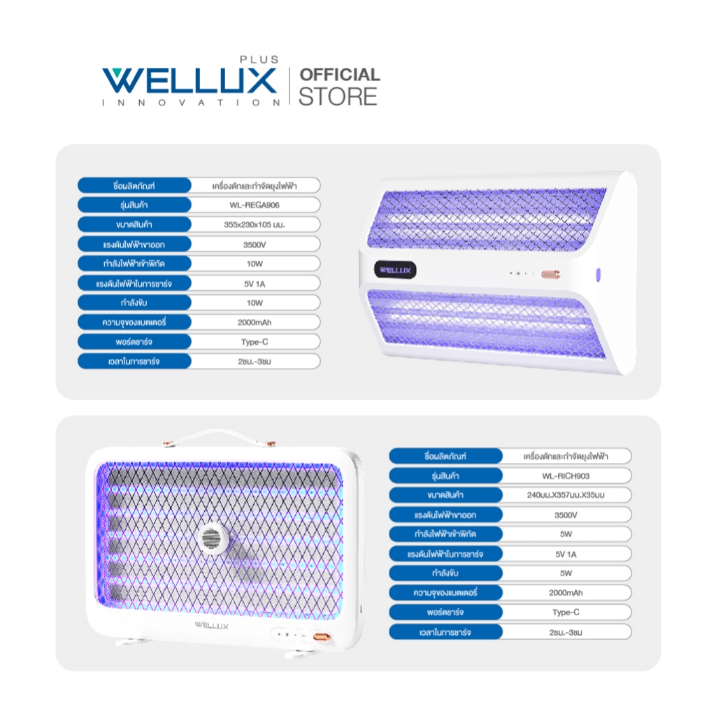 WELLUX เครื่องดักกำจัดยุงไฟฟ้ามินิมอล 5W 10W แบบชาร์จไฟได้ Rechargeable Mosquito Killer 903