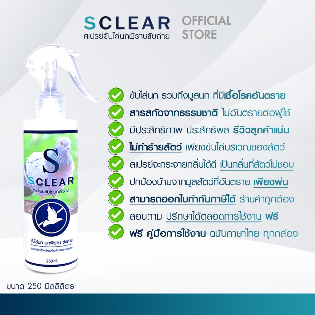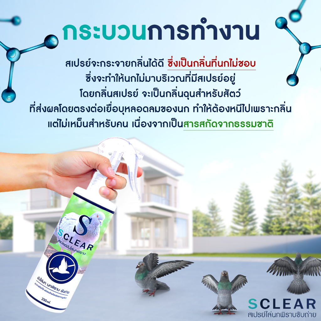 สเปรย์ไล่นก ไล่นกพิราบ ไล่อีกา ไล่นกขี้ ป้องกันนกพิราบ ที่ไล่นก สารสกัดจากธรรมชาติ 250 มล. ส่งไว