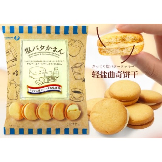 TAKARA BISCUIT ขนมคุ้กกี้สอดใส้เกลือเนยชีส ( 1ห่อ มี 12 ชิ้น ) 宝製菓 塩バターかまん12枚入