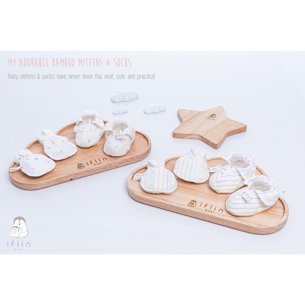 Iflin Baby - เซตถุงมือ & ถุงเท้า สำหรับ เด็กแรกเกิด - Mittens & Socks - ถุงมือ 1 คู่ + ถุงเท้า 1 คู่