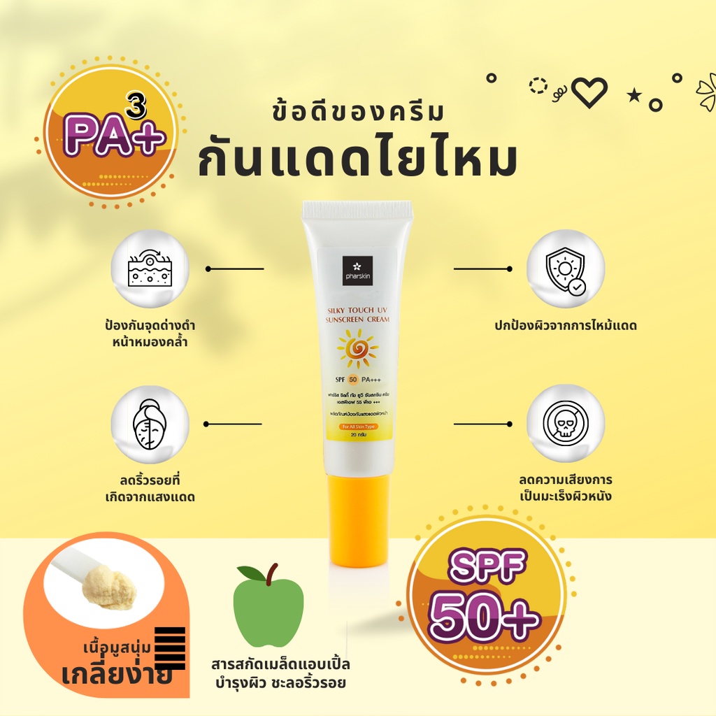 กันแดดไยไหมเนื้อซิลิโคน เหมาะกับผู้ที่แพ้ครีมกันแดดประเภทเคมีl เนื้อกันแดดบางเบา เกลี่ยง่าย ไม่หนักหน้า