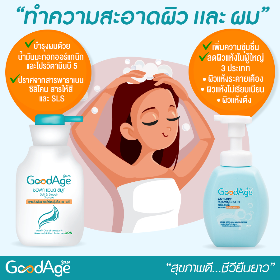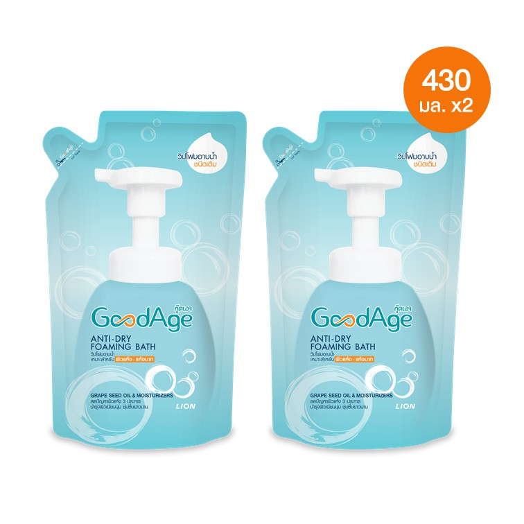 GoodAge Anti-Dry Foaming Bath กู๊ดเอจ วิปโฟม อาบน้ำ ผิวแห้ง-แห้งมาก 430 มล (ชนิดถุงเติม) 2 ถุง