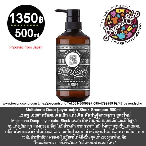 Moltobene Deep Layer extra Sleek Shampoo 500ml + Treatment 470g แชมพู+ครีมนวดบีสำหรับผมเส้นเล็ก แห้งเสีย พันกันจัดทรงยาก
