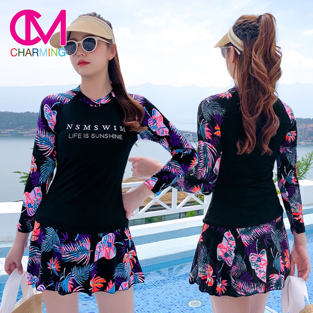 ชุดว่ายน้ำ เสื้อแขนยาว กระโปรงกางเกง สวยเก๋ สีสันสดใส รุ่น Q928