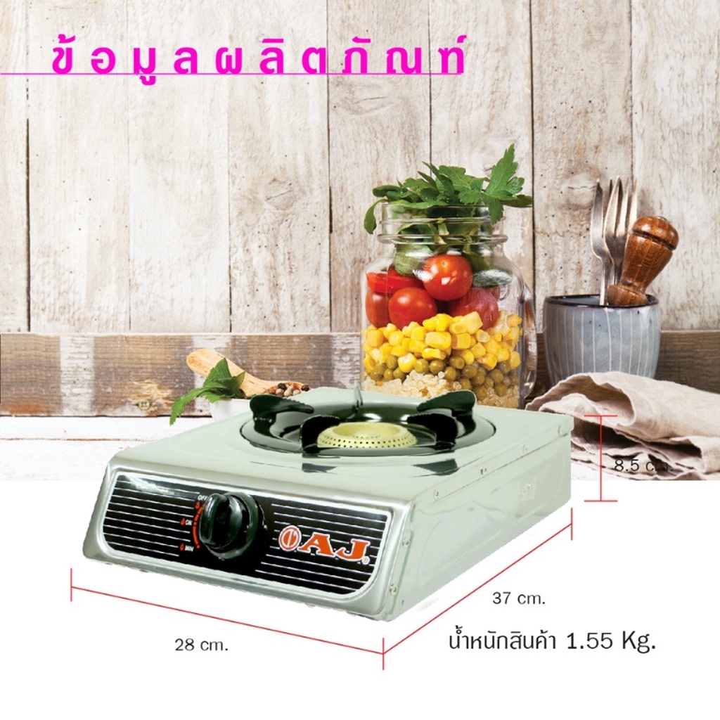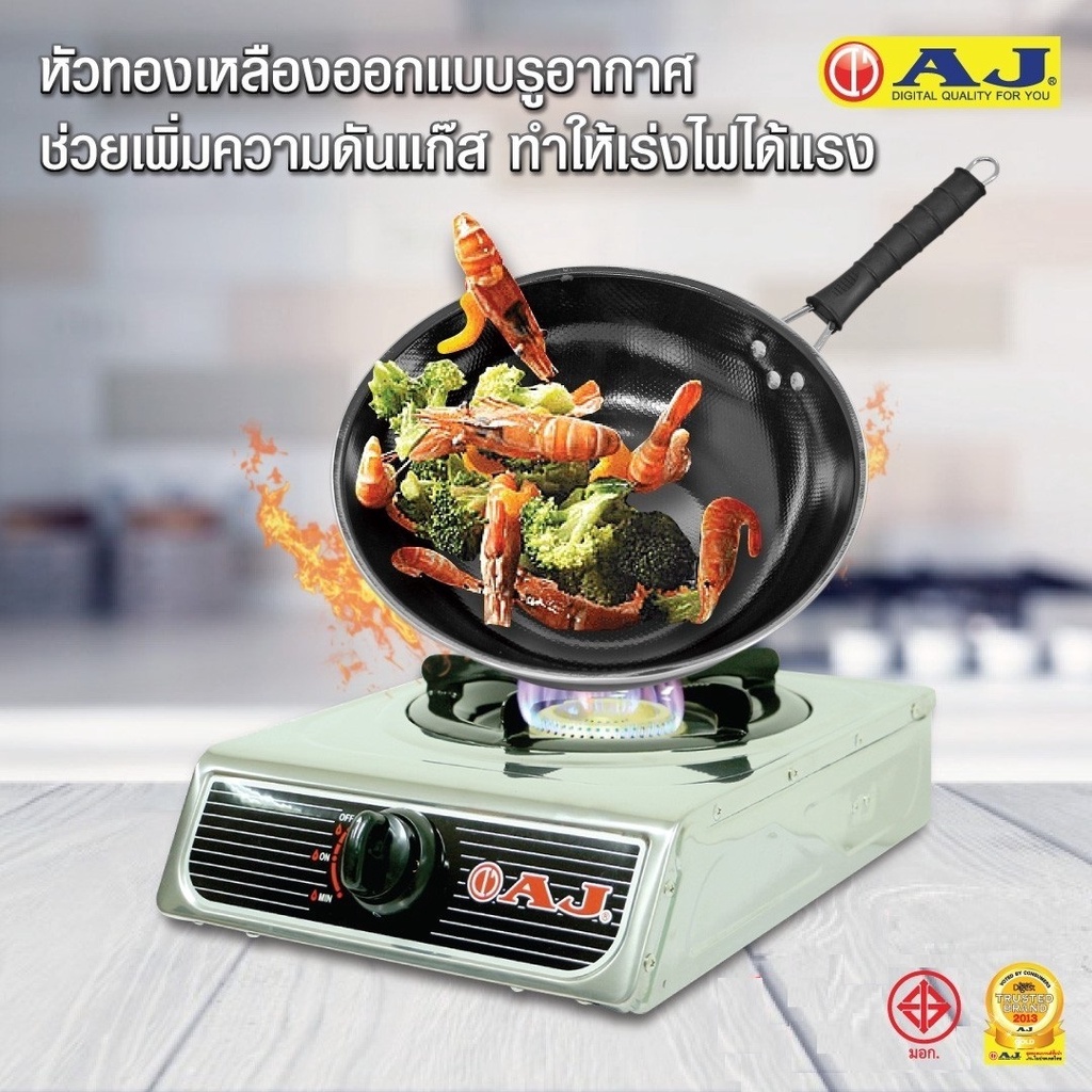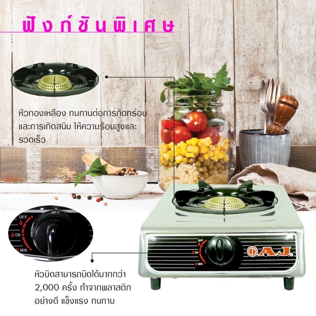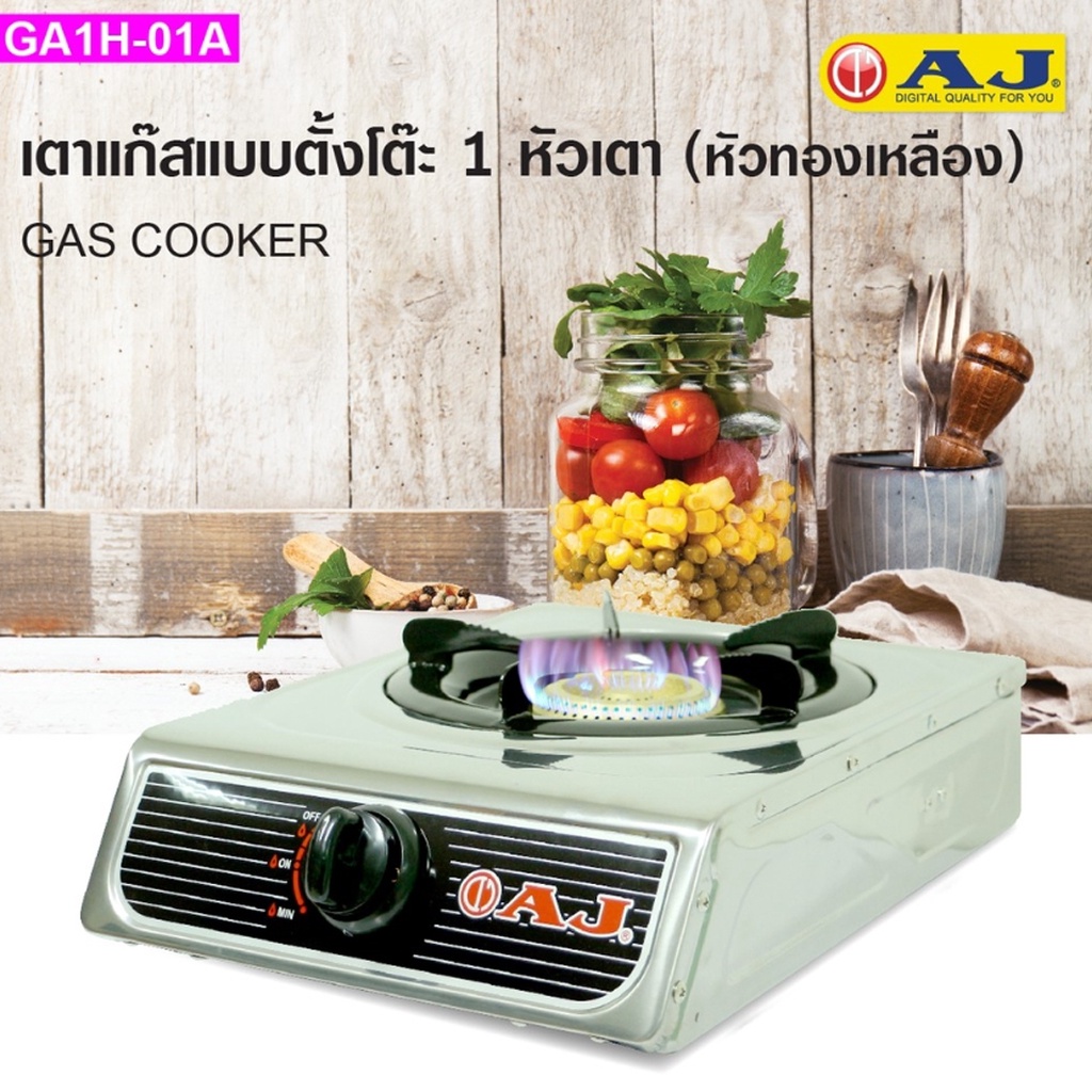 AJ รุ่น AJ-GA1H-01A เตาแก๊สสแตนเลสหัวเดี่ยว หัวฟู่ทองเหลือง พร้อมส่ง มีเก็บเงินปลายทาง
