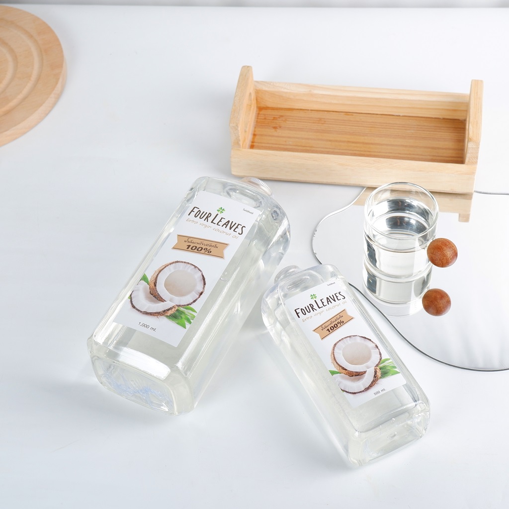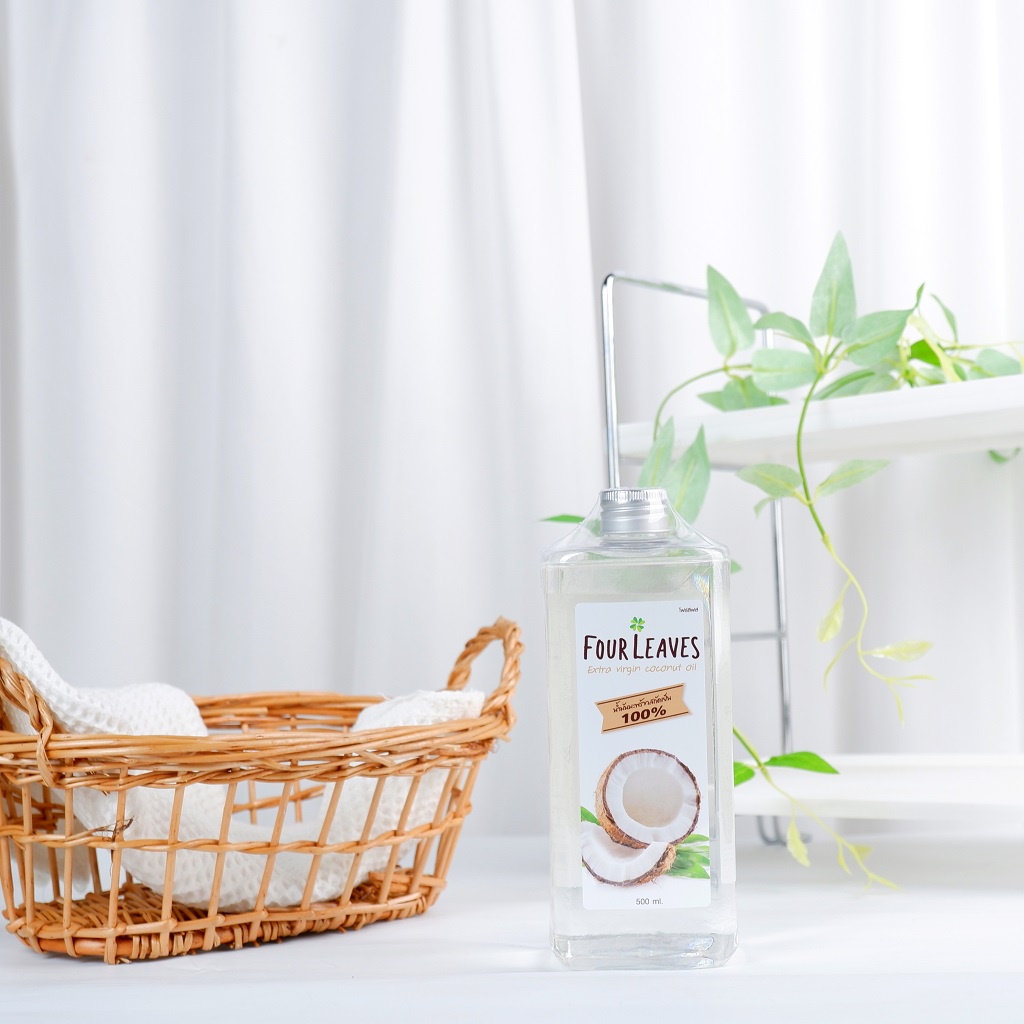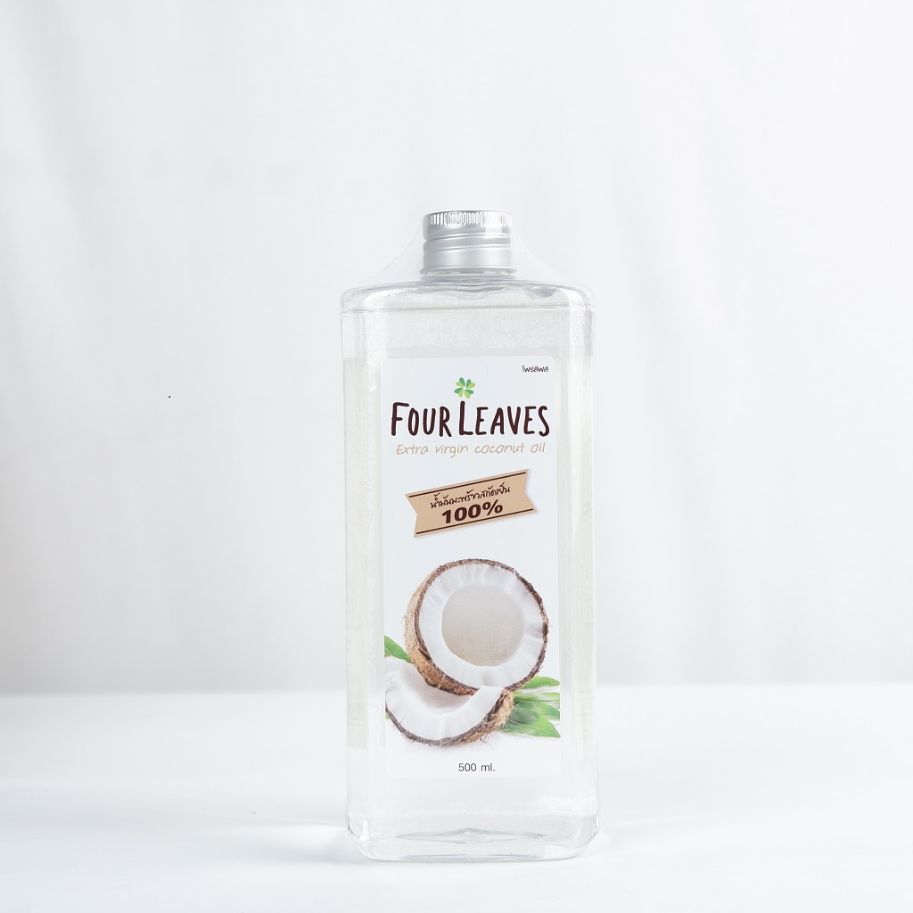 FOUR LEAVES น้ำมันมะพร้าวสกัดเย็น 100% ตราโฟร์ลีฟส์ ขนาด 500 มล. มีอย. รับประทานได้