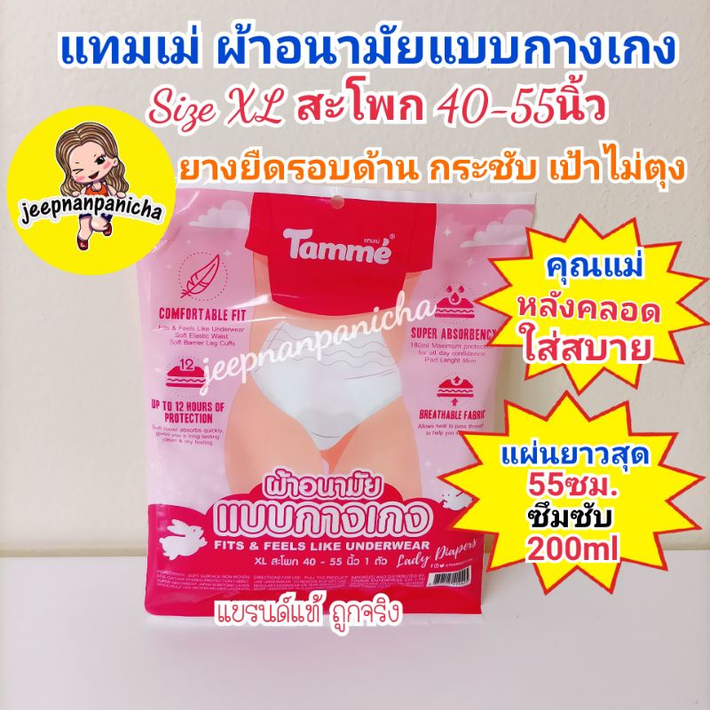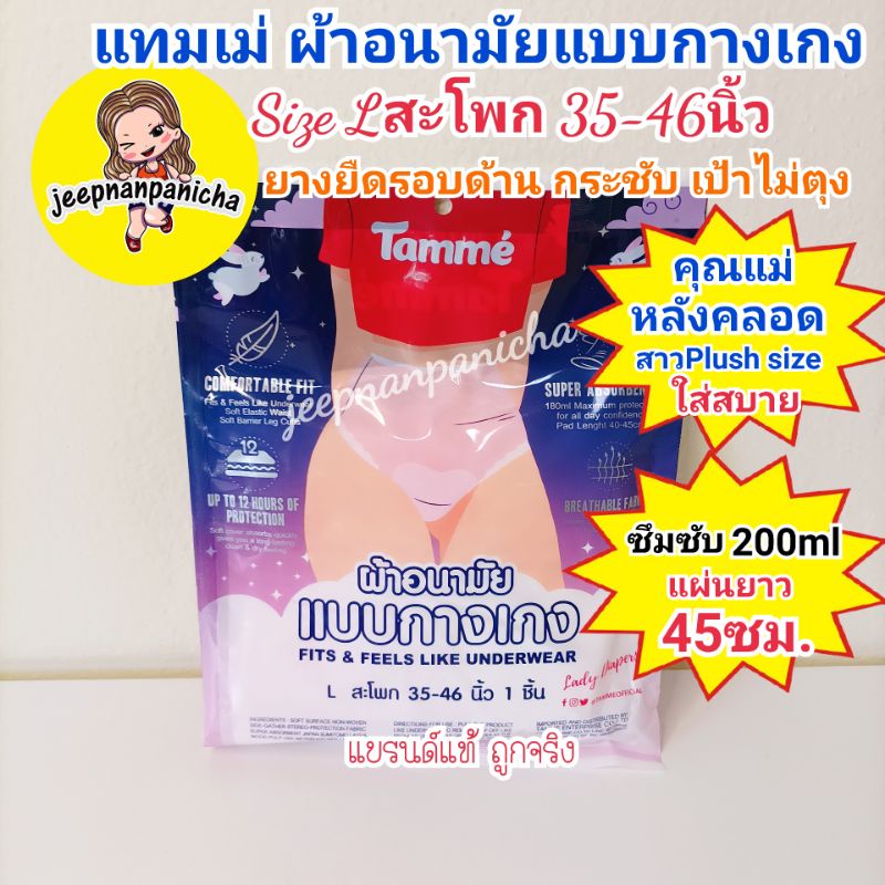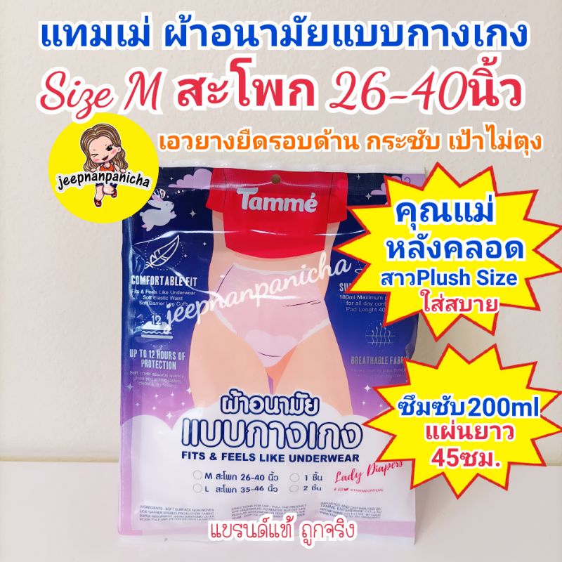 ผ้าอนามัยแบบกางเกง แทมเม่ Tamme Size M/L ใส่หลังคลอด สาวPlush size ใส่ได้กระชับ เป้าไม่ตุง