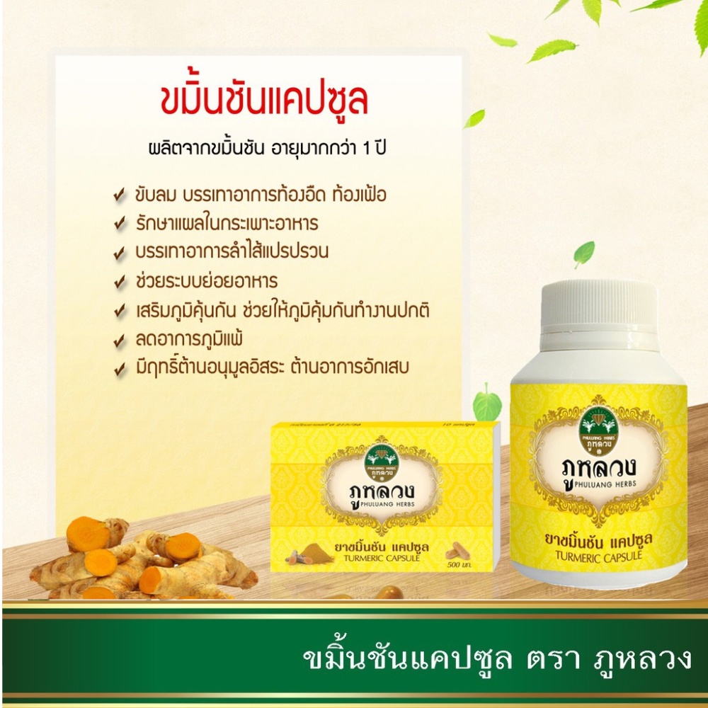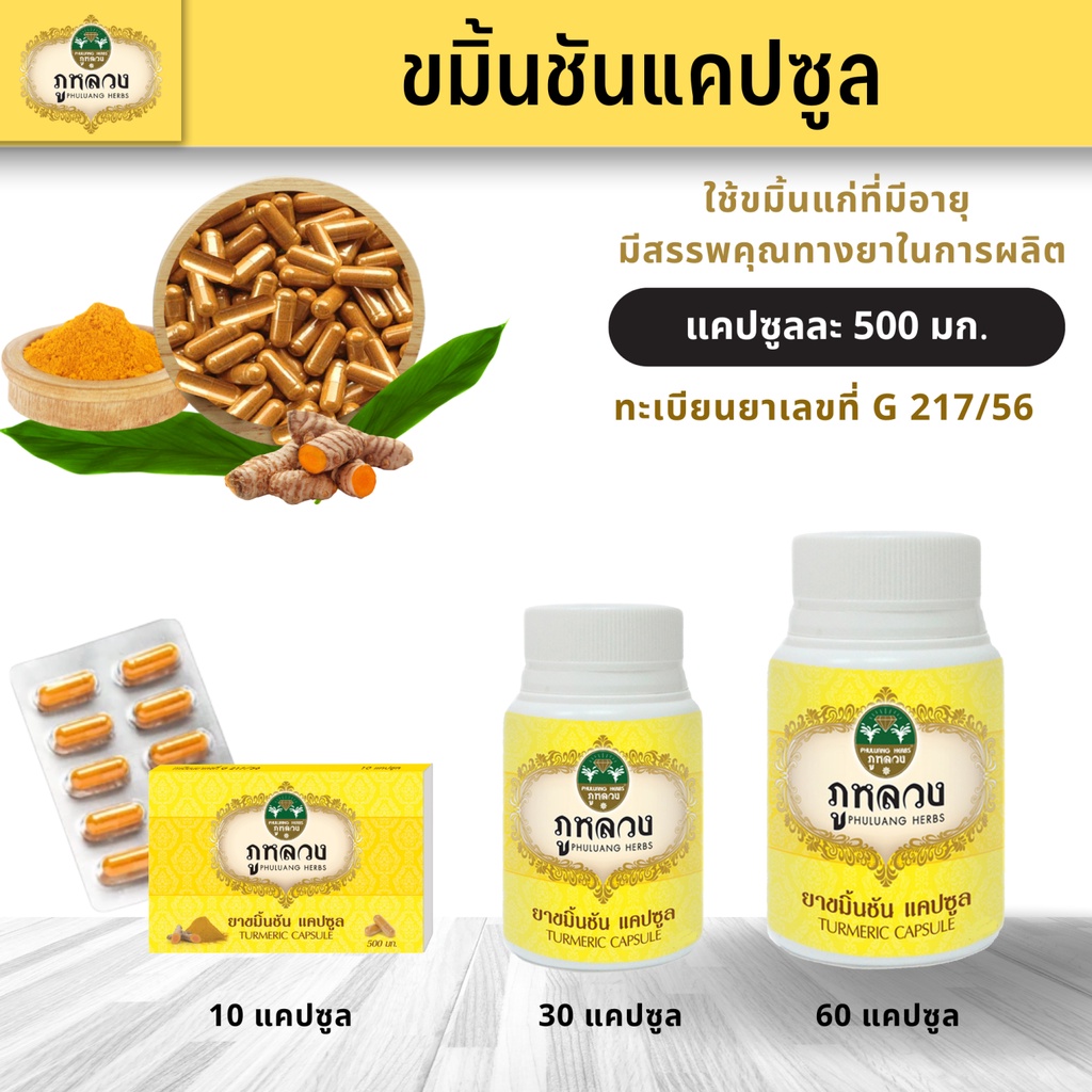 ขมิ้นชัน แคปซูล ตรา ภูหลวง (ผงยารวมแคปซูล 500 มก) 📣 😍 โค้ดส่วนลด🔖 ถ้ามีจะโพสที่หน้าร้าน 😍 ขนาด 60 30 10 แคปซูล