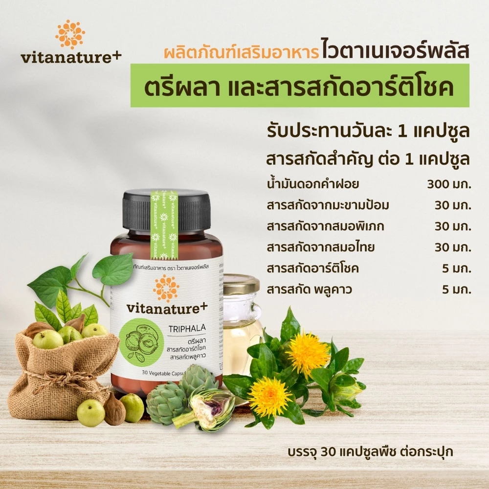 vitanature+ Triphala with Artchoke Extract ไวตาเนเจอร์ พลัส ตรีผลา