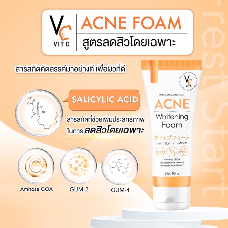 ใหม่ โฟมฉัตร VC Vit C Acne Foam วิตซี แอคเน่โฟม สูตรลดสิว
