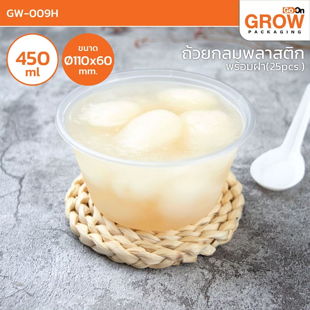 ถ้วยกลมพลาสติก+ พร้อมฝาใส่อาหาร ยี่ห้อ GoOn GROW (โกออน โกร์ว)