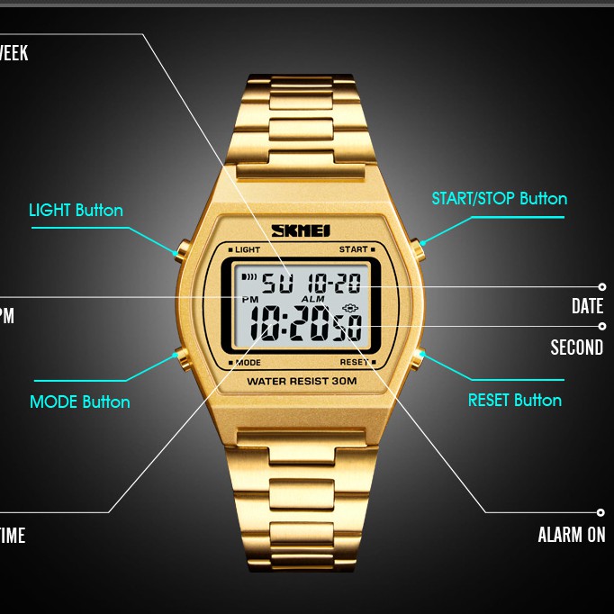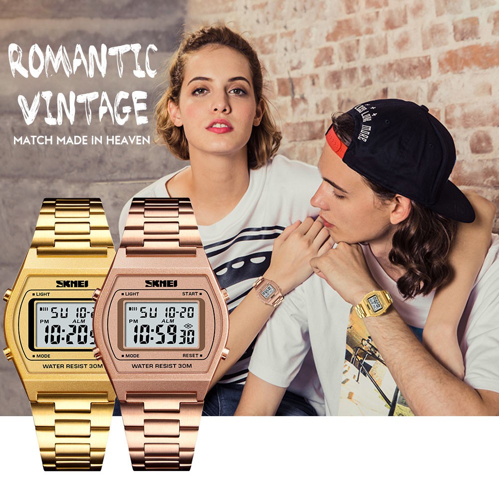 สุขสันต์วันสงกรานต์ SKMEI นาฬิกากันน้ำ ของขวัญ นาฬิกาแฟชั่นสายเหล็กเกรดสูง จอดิจิตอล โครงสร้างสังกะสีอัลลอยด์ แข็งแรงไม่บิดเบี้ยว กระจกกันรอยขีดข่วนพิเศษ ข้อมือ