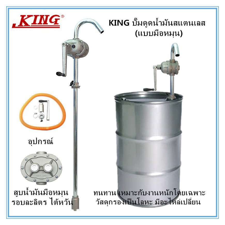 KING ปั๊มดูดน้ำมันสแตนเลส รุ่น K-P-1 มือหมุน รอบละ 1 ลิตร รุ่นงานหนัก ปั๊มหมุนน้ำมัน มือหมุนน้ำมัน