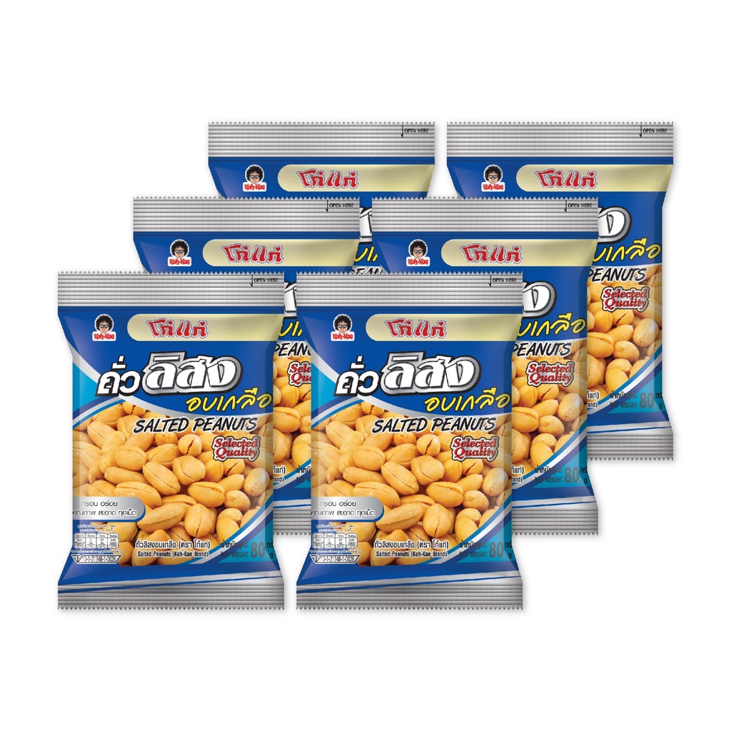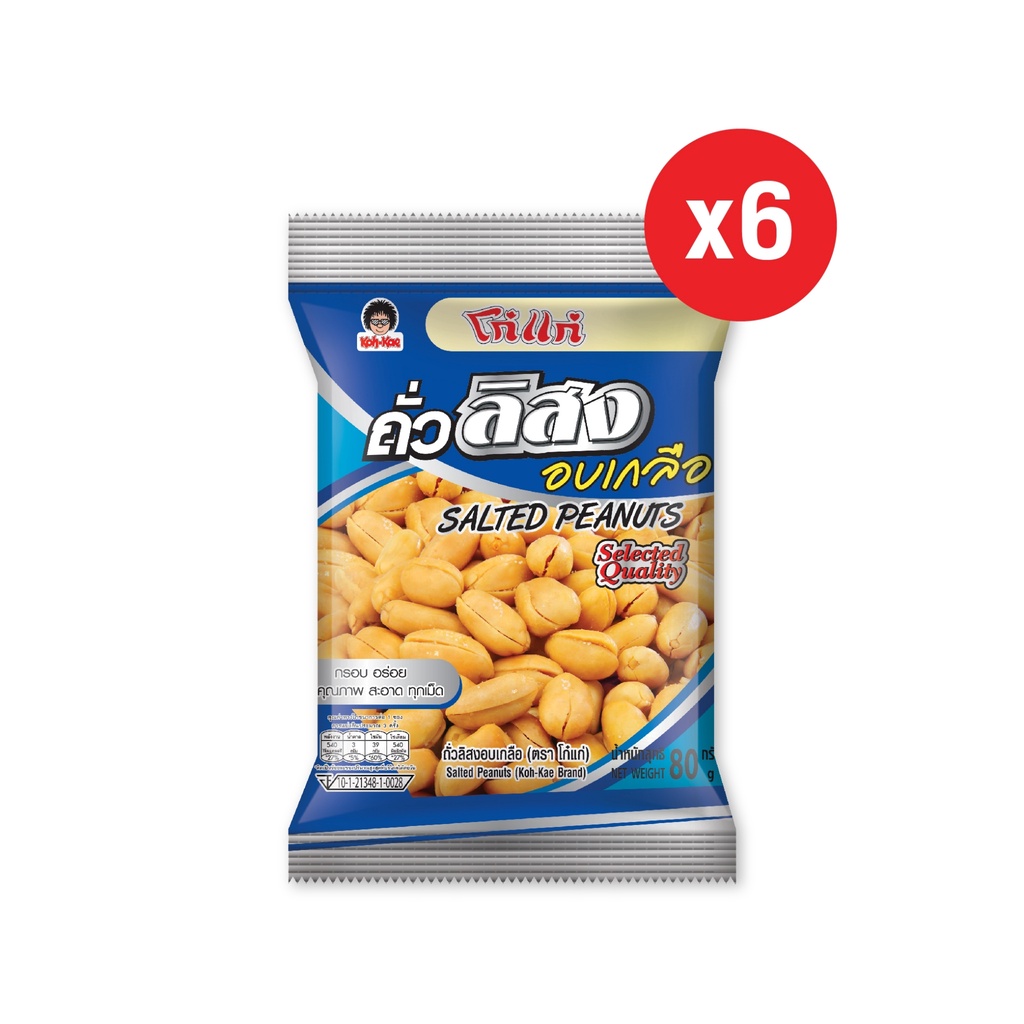โก๋แก่ถั่วลิสงอบเกลือซองหมอน 20 บาท 80g 1แพ็ค(6 ซอง)