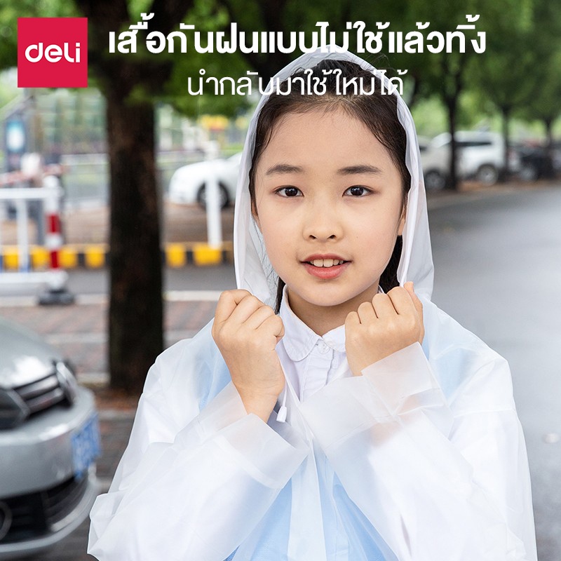 Deli เสื้อกันฝน EVA ชุดกันฝน สีขาว คุณภาพดี กันน้ำ แบบหนา Rain coats