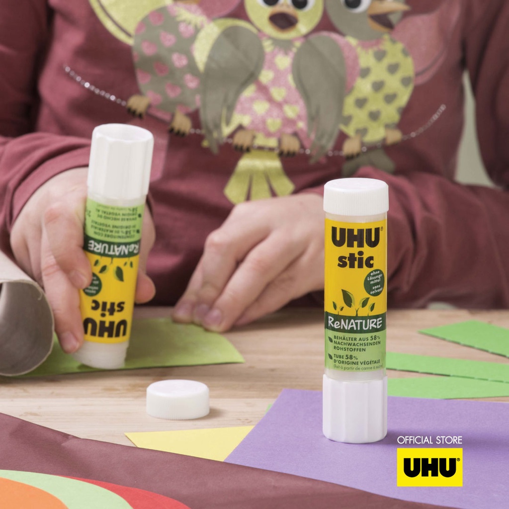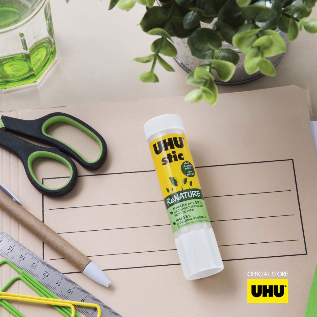 UHU ยู้ฮู กาวแท่ง รุ่นรักษ์โลก Renature ติดแน่น แห้งเร็ว รีไซเคิล 100%
