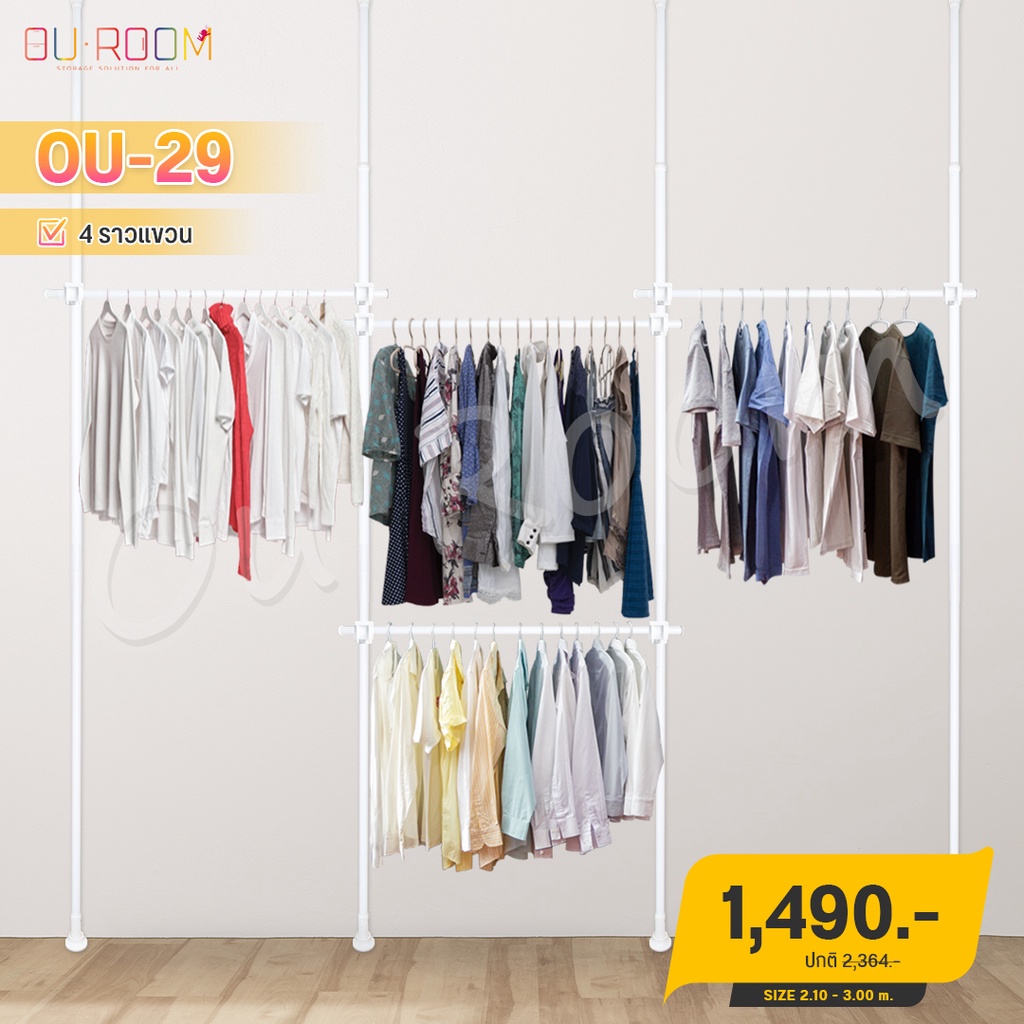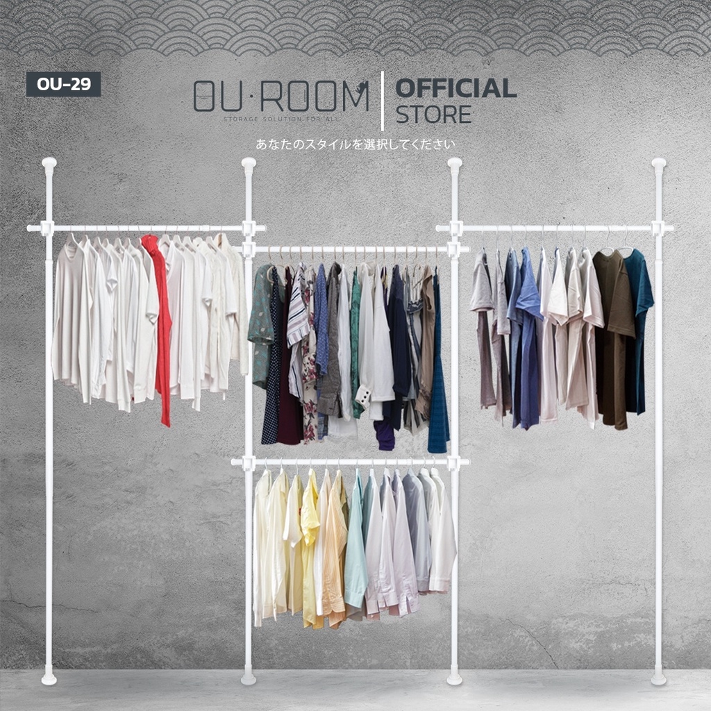 OUROOM ราวแขวนเสื้อ ราวแขวนผ้า ราวแขวนไม่ต้องเจาะ ราวแขวน DIY 4 เสา 4 ราวแขวน (OU-29)